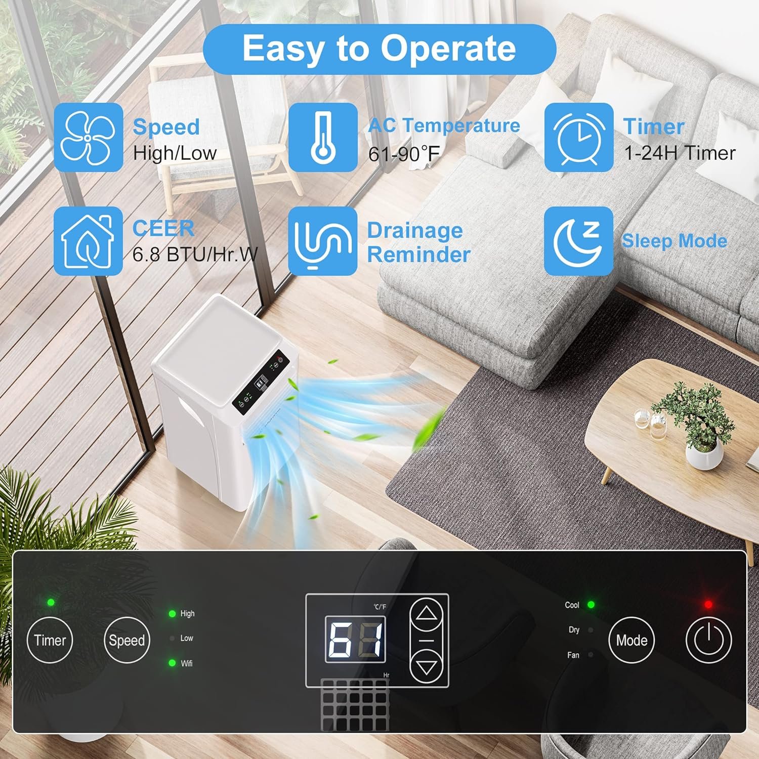 【Smart WIFI Control From Anywhere】 With our app, you can conveniently control your portable air conditioner from anywhere. On hot summer days, you can turn on your portable air conditioner before arriving home so that you can enjoy cool air as soon as you walk through the door. No matter where you are, you have the ability to control your air conditioner, easily adjusting its temperature, switching operating modes, fan speed and more through your smartphone or tablet.