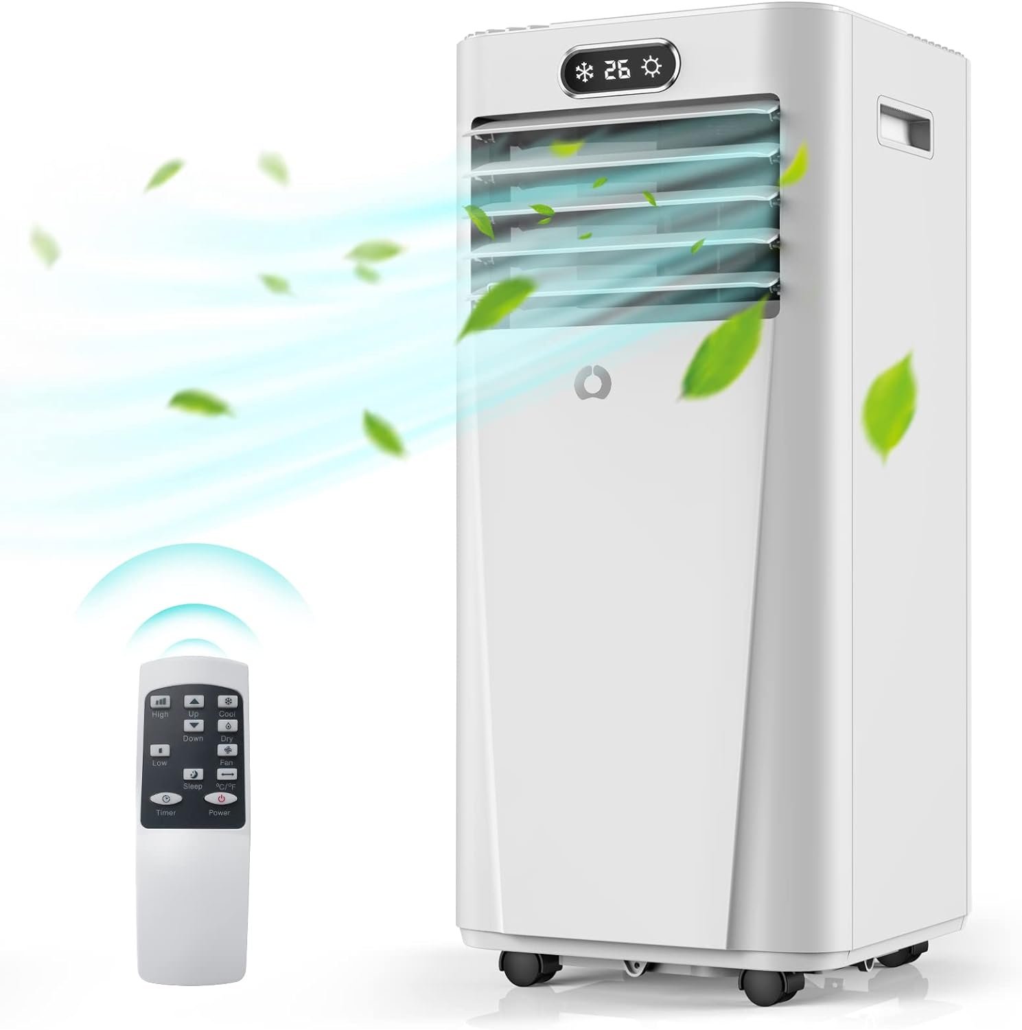 【Easy to Operate】Our portable A/C unit is fully equipped with a smart LED panel, full-function remote control to change the time, temperature and mode easily. The additional temperature display on the front of the portable air conditioners allows you to see the temperature from a distance or in the dark. Four casters and built-in grips can help you move the air conditioner portable from room to room effortlessly.