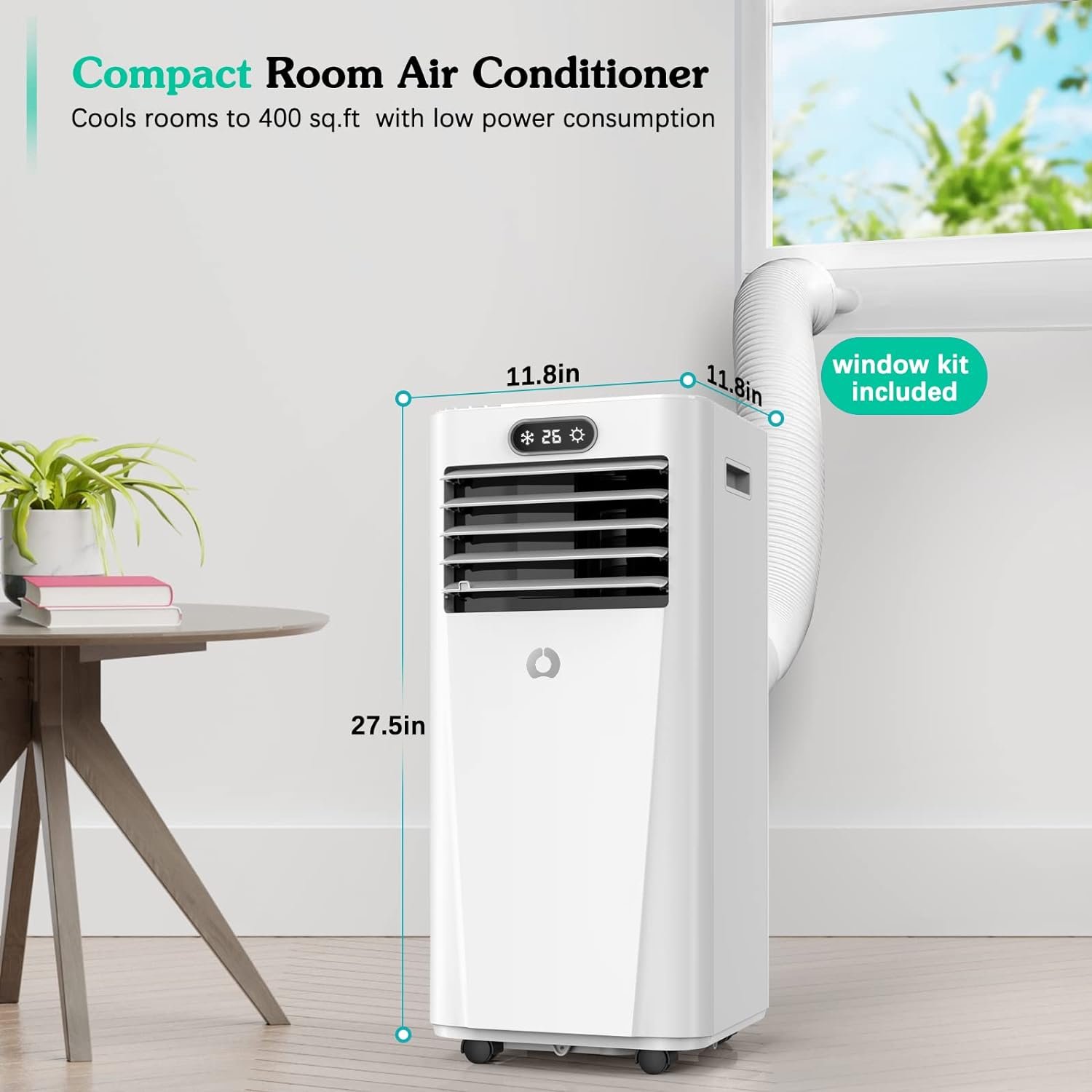 【Easy to install】 Simply roll this portable ac air conditioner (111.8×11.8×27.5in) to any room with double hung or sliding windows, attach the included hose (4.9’ 59”) and window adapter and plug into an outlet to use. No need to install on the wall so it will save space and cost. Installation instructions are simple and can be completed by anyone.