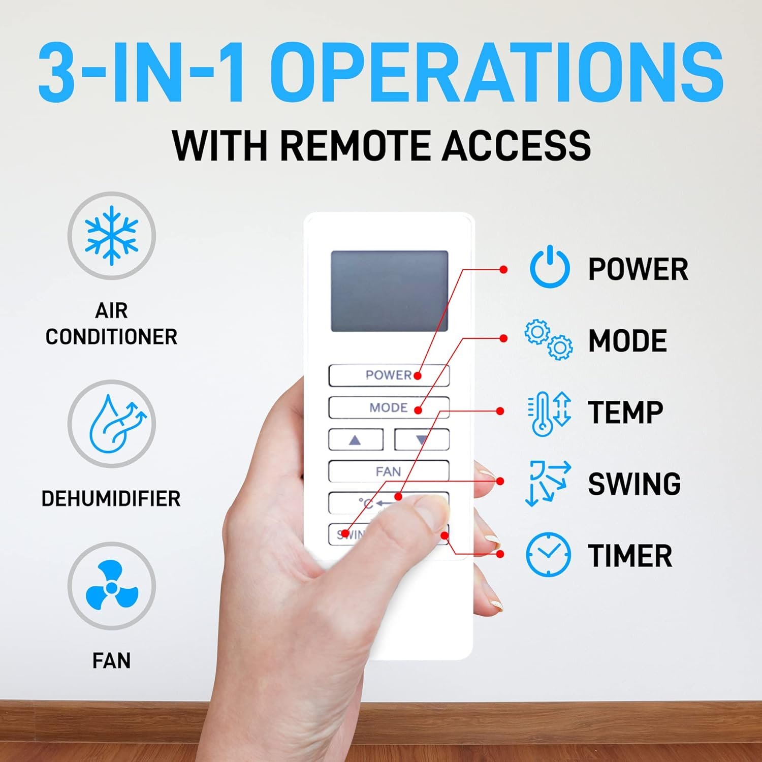 3-IN-1 OPERATIONS – AIR CONDITIONER, DEHUMIDIFIER, AND FAN: A chilly room temperature from a room air conditioner is not always the requirement, because of which it comes with a built-in dehumidifier and a fan mode with 2 speed settings. Switching between these modes is super easy with the digital remote control.