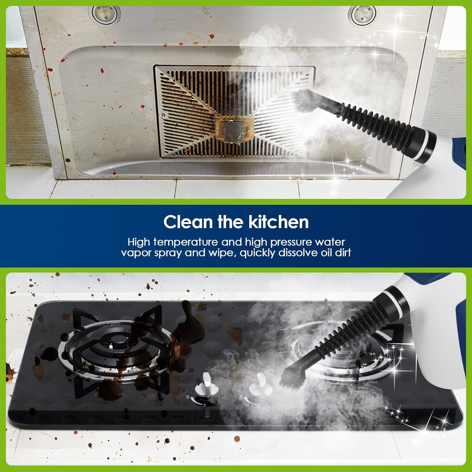 [MULTI-SURFACE CLEANING]: High-temperature steam cleaner can meet your everyday domestic cleaning needs. It is ideal for cleaning sinks, stoves, countertops, refrigerators, windows, toilets, tiles, shower curtains, pet toilets, cat litter boxes, car seats & rims, grills, BBQs, toys, mattresses, linen, duvet cover, and fabric clothing in various scenes.