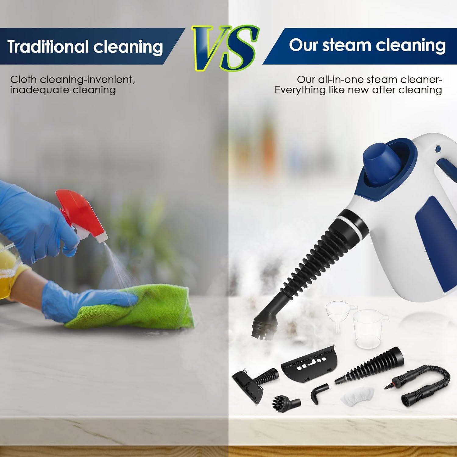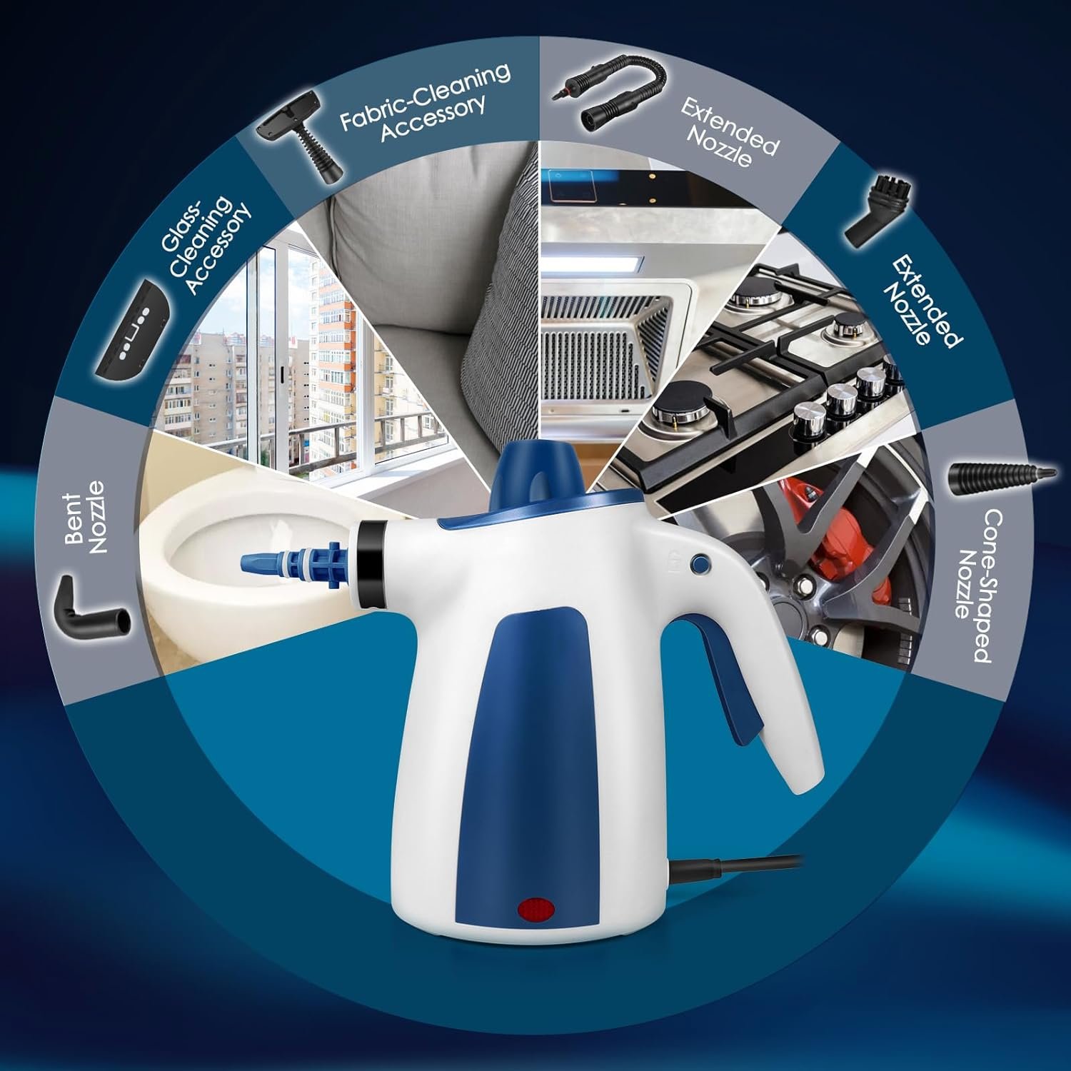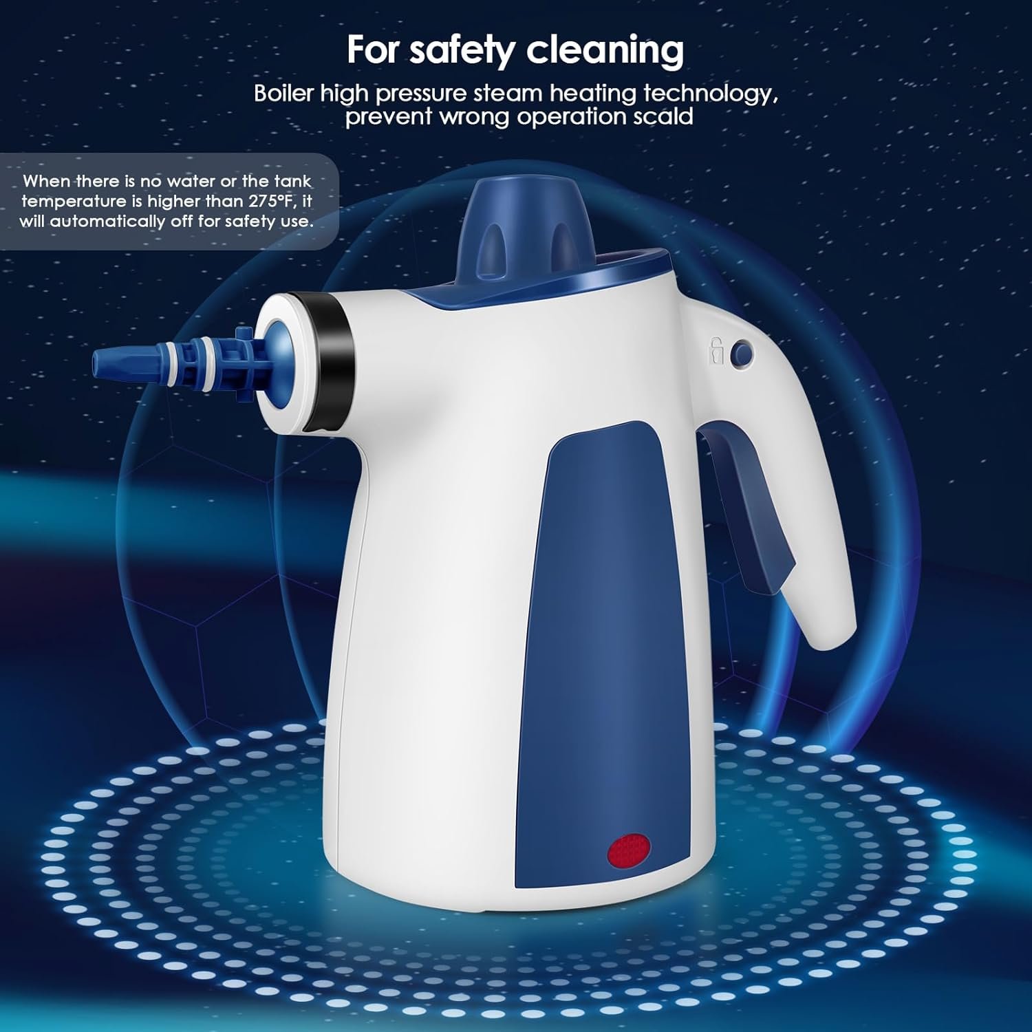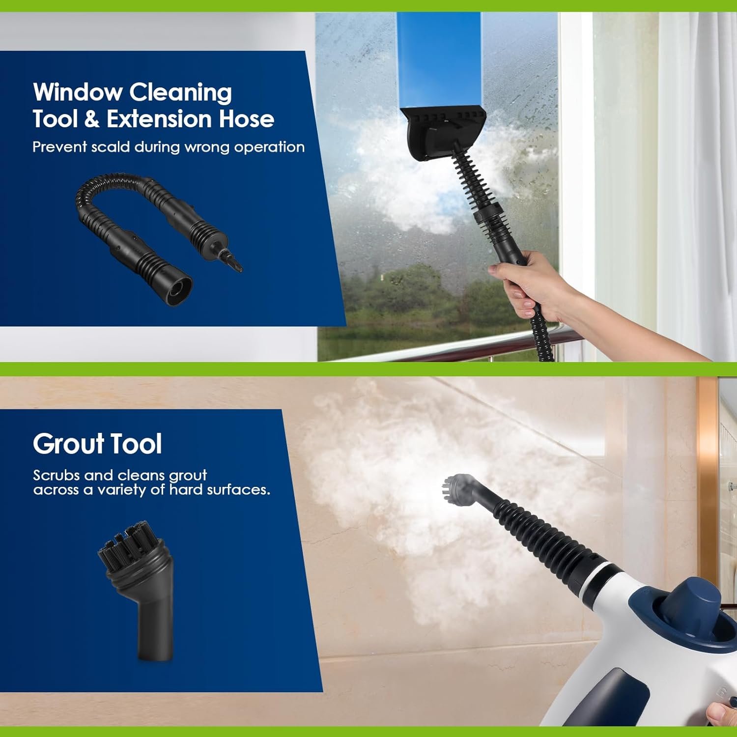 1050W Pressurized Handheld Multi-Surface Steam Cleaner, Steam Cleaner for Home with Safety Lock and 9 pcs Accessories, Natural Steamer for Cleaning Grout, Couch, Furniture, Upholstery, Floor and Car