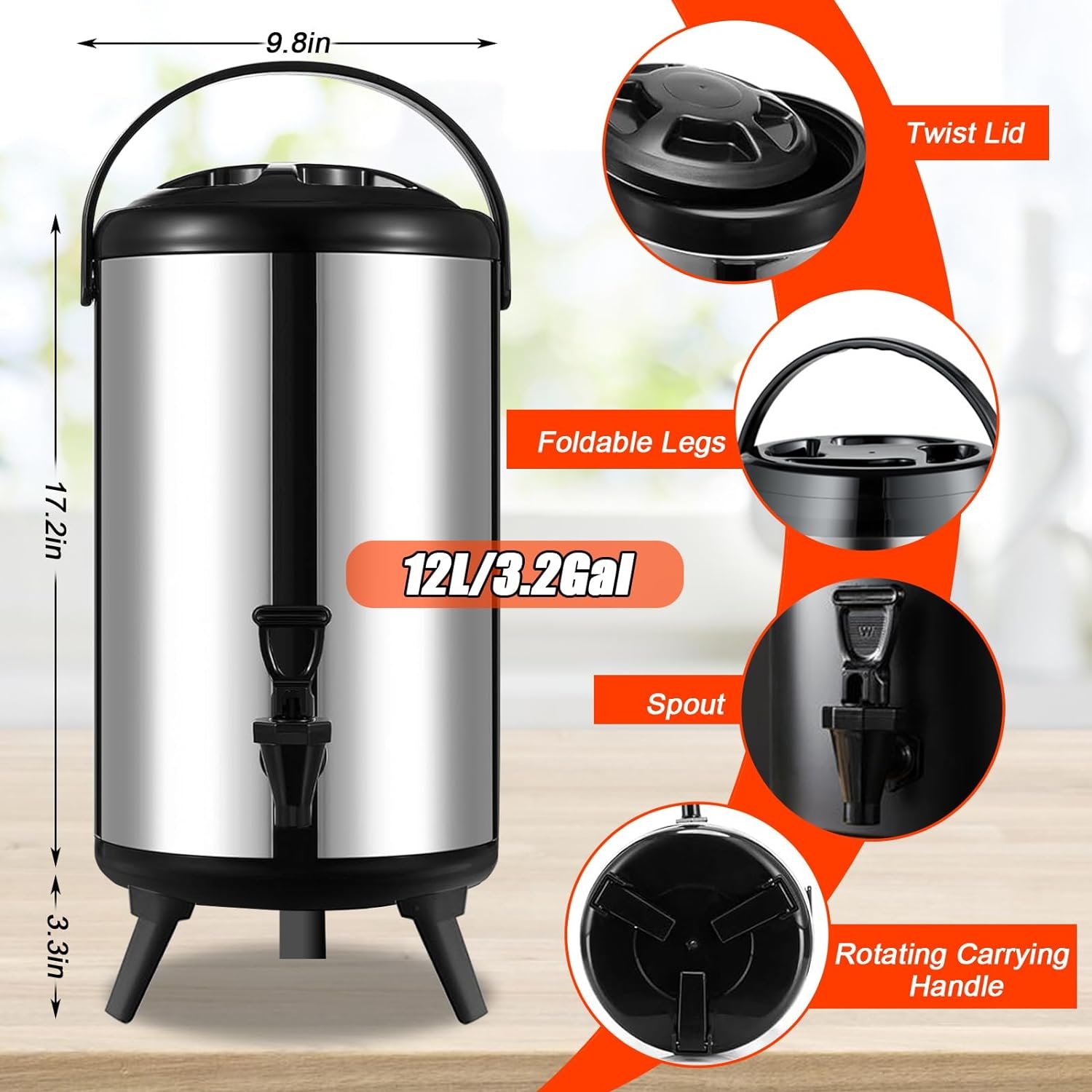 Strong mobility and easy portability: You can lift this hot water urn dispenser with just one arm. Whether it’s in a fixed store, going on picnics, or more outdoor activities, it can move quickly and be easy to carry.