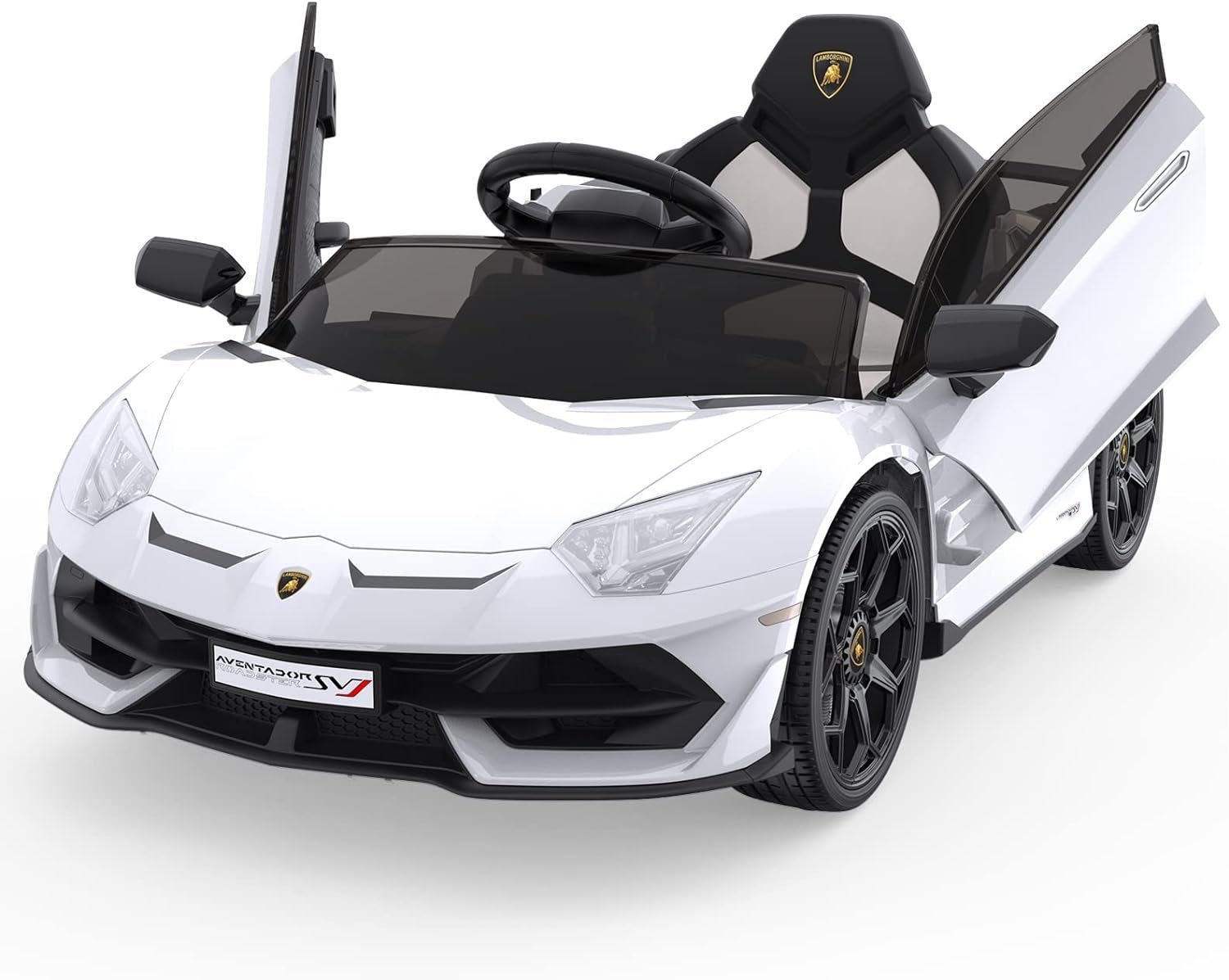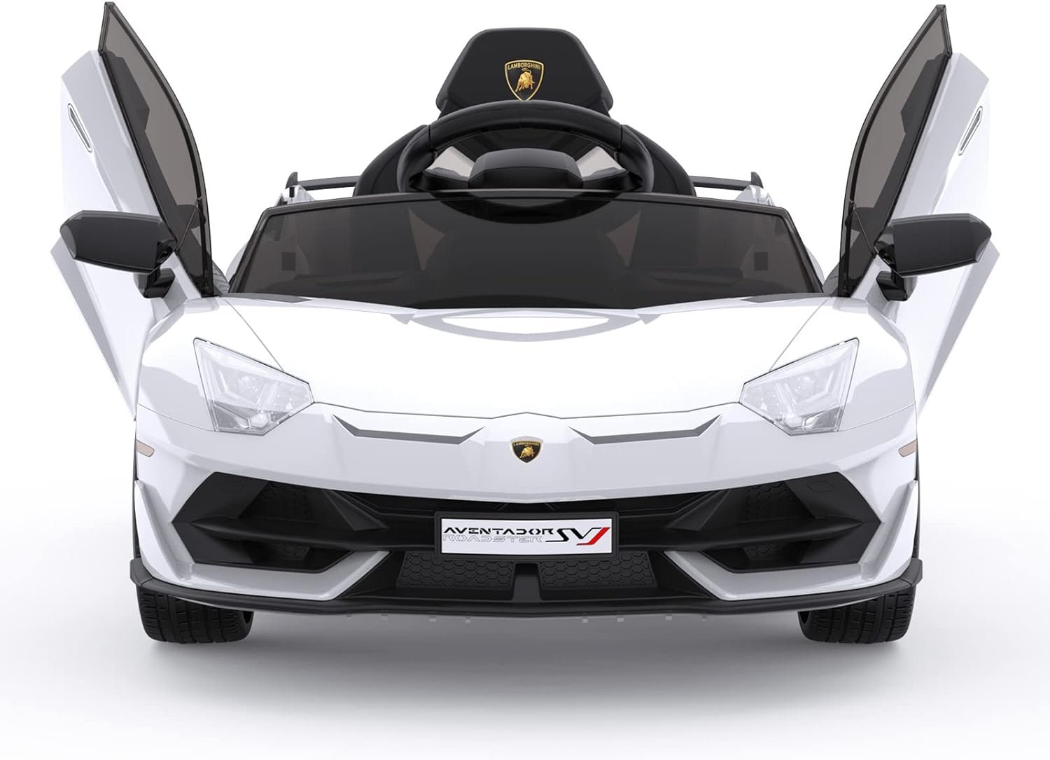 [Licensed Sports Car] Officially licensed, this ride-on car has LED headlights, horn and engine sounds, and hydraulic powered doors that swing open just like the real . Battery charging time is 8-12 hrs.