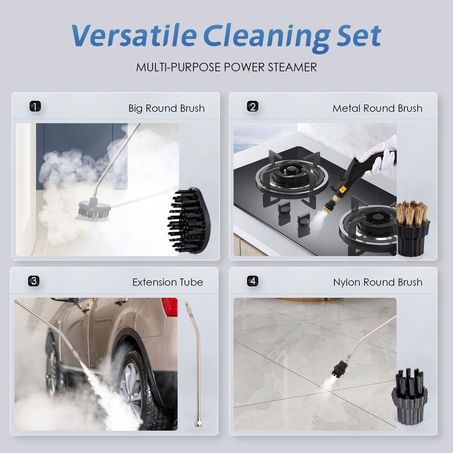 [Strong Impact Force] : 1500W and 4bar/58psi strong power makes this high pressure steamer cleaning machine great for melting grease and grime. The tile and grout steam cleaner has a wide range of application scenarios and you can use it to easily clean your kitchen, bathroom, living room and car.