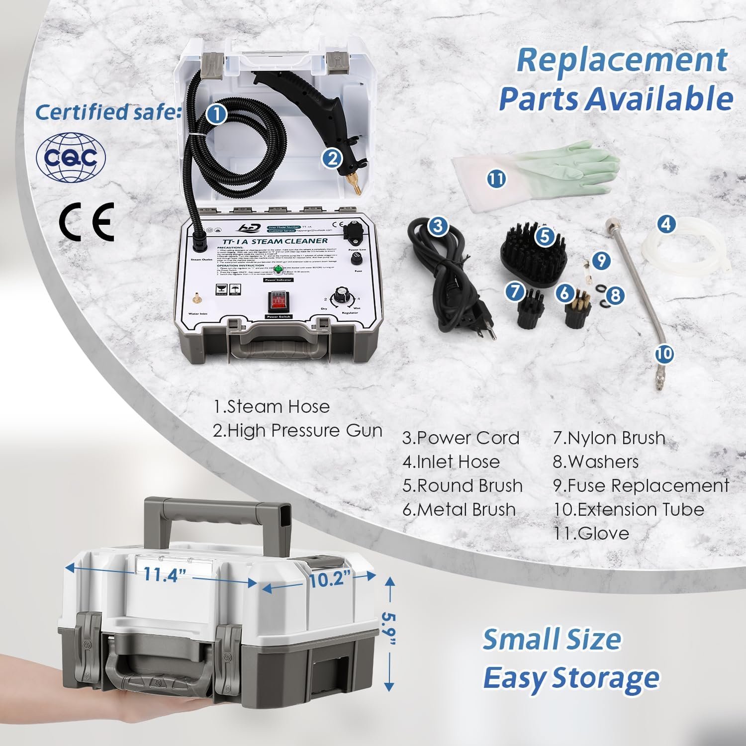 [Buyers To Know]:Before leaving the factory, each unit will be tested, so there will be water traces on the water inlet hose. The temperature and pressure of the steam are highest at the nozzle, and the further away from the nozzle, the lower the temperature and pressure. Please be aware that this is an unavoidable natural phenomenon.