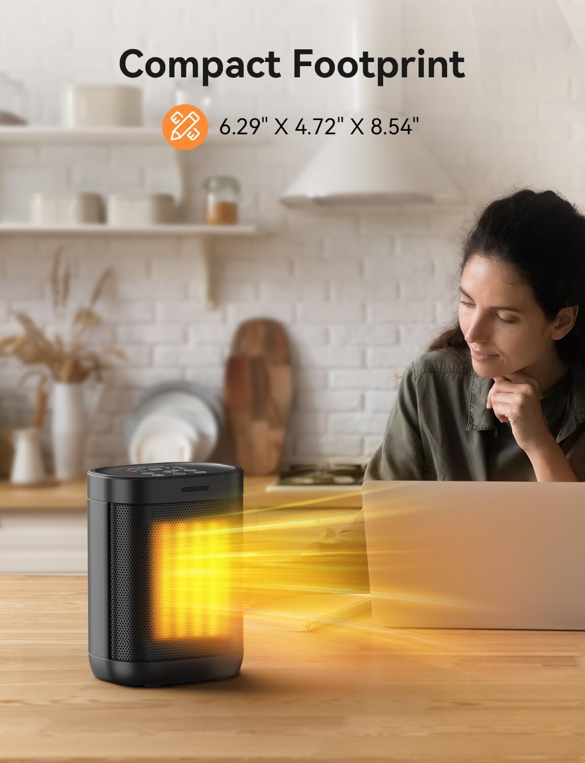 1500W Space Heaters for Indoor Use, Portable Electric Heater with ECO Mode, 59-95°F Digital Thermostat, Child Lock, 24H Timer, Small Space Heater for Bedroom Office Living Room