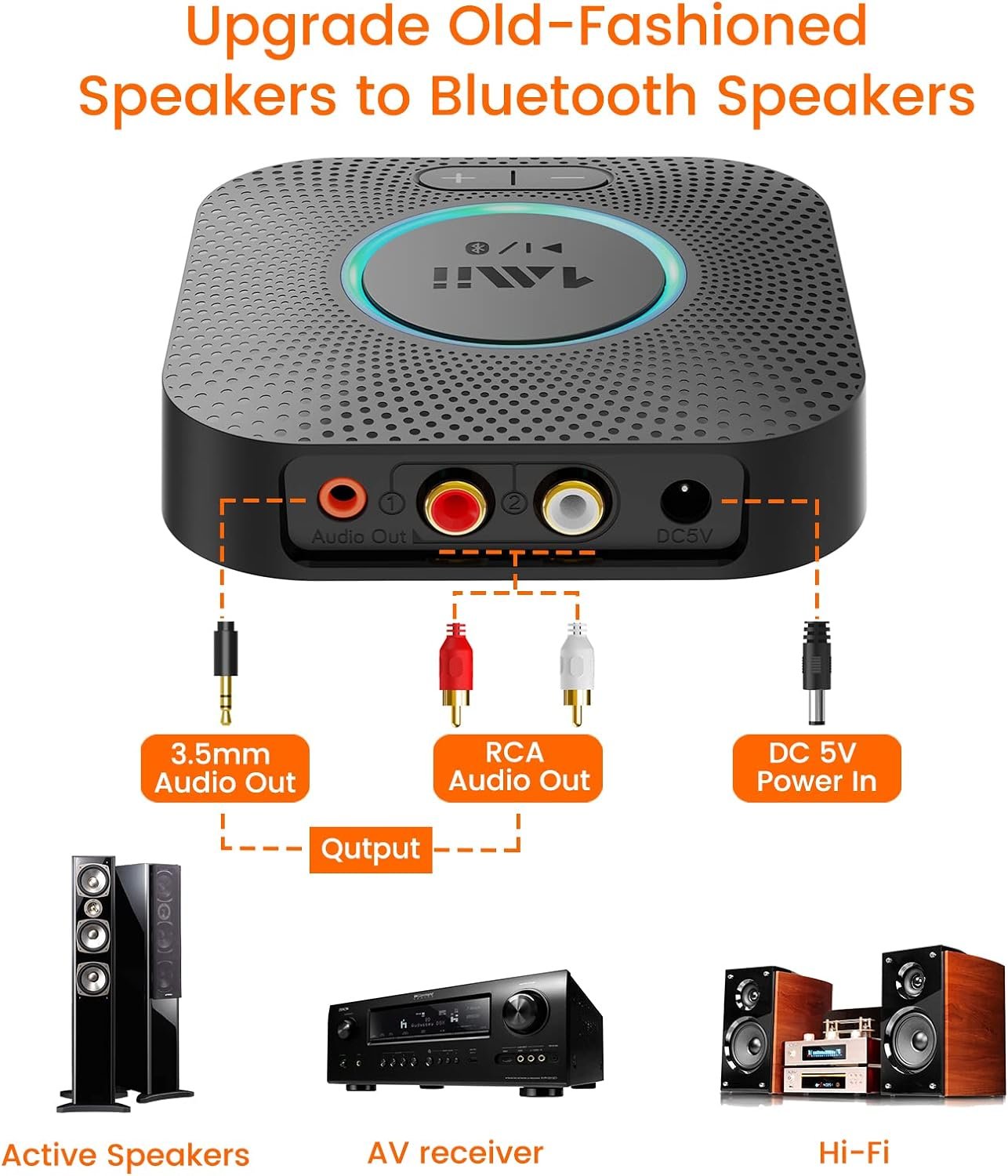 1Mii B06S Bluetooth 5.2 Receiver for Music Streaming System, Hi-Fi Wireless Audio Adapter for Stereo Receiver w/aptX HD aptX Low Latency, Bluetooth Receiver w/Volume Control RCA/3.5mm Outputs