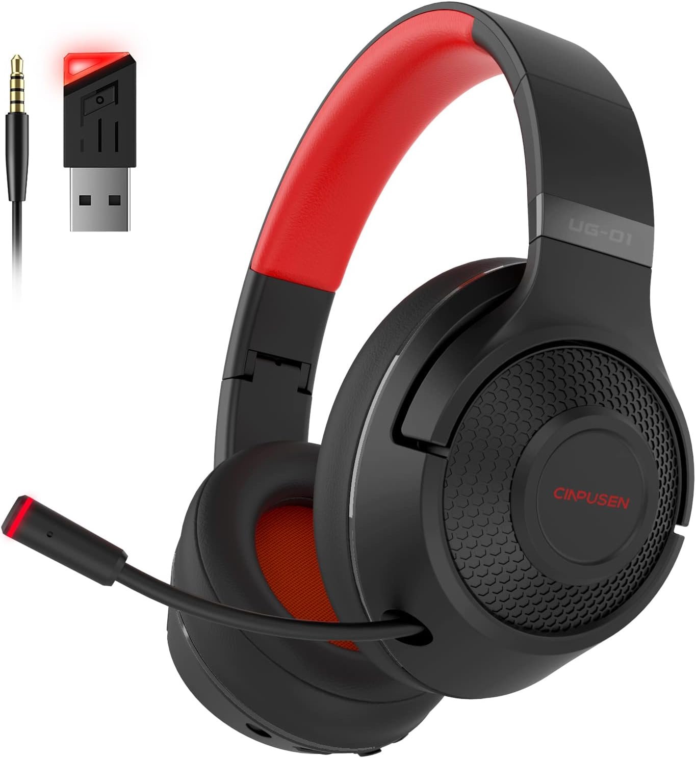【2.4Ghz Ultra-Low Latency Connection】 UG-01 wireless gaming headset adopts advanced 2.4Ghz wireless connection technology, comes with a USB dongle that provides stable and ultra-low latency transmission within, which means that you won’t feel any lag while playing games or chatting with your friends.