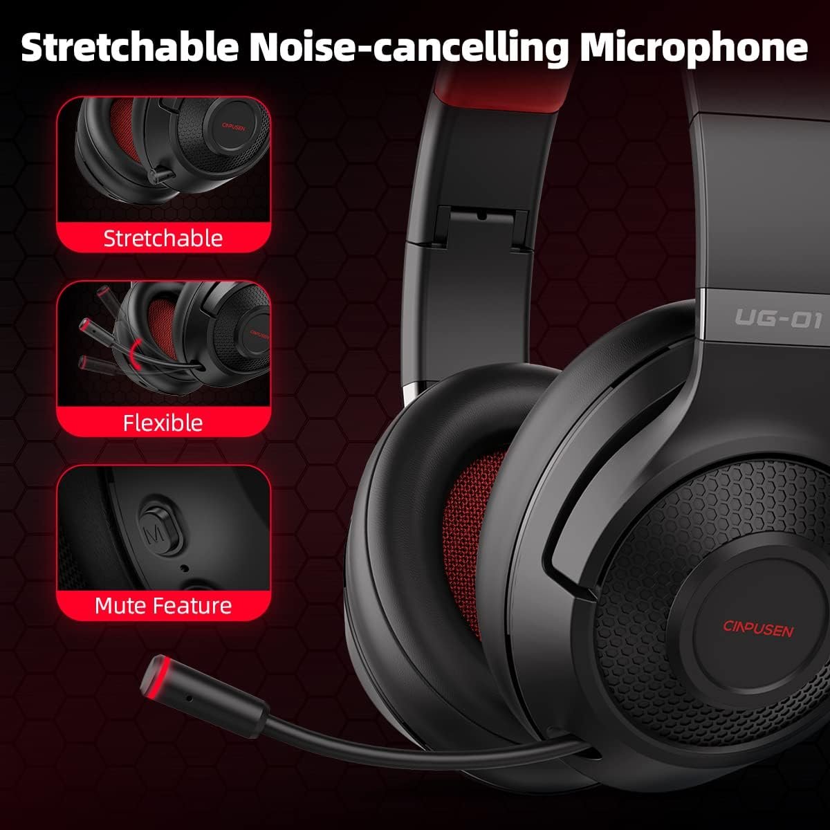 【Immersive Gaming Sound Quality】 Drove by a 40mm high definition speaker unit, UG-01 wireless gaming headsets deliver superior 3D surround gaming sound quality. Besides, Adopting Dynamic EQ technology, these gaming headphones ensure that no session or signal is lost while adjusting the volume. You can keep yourself lost in your games.