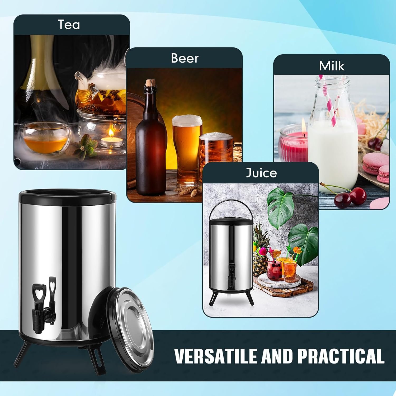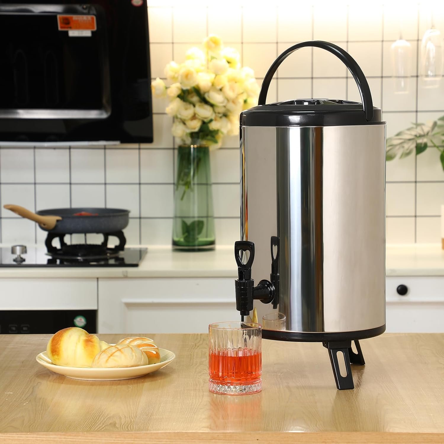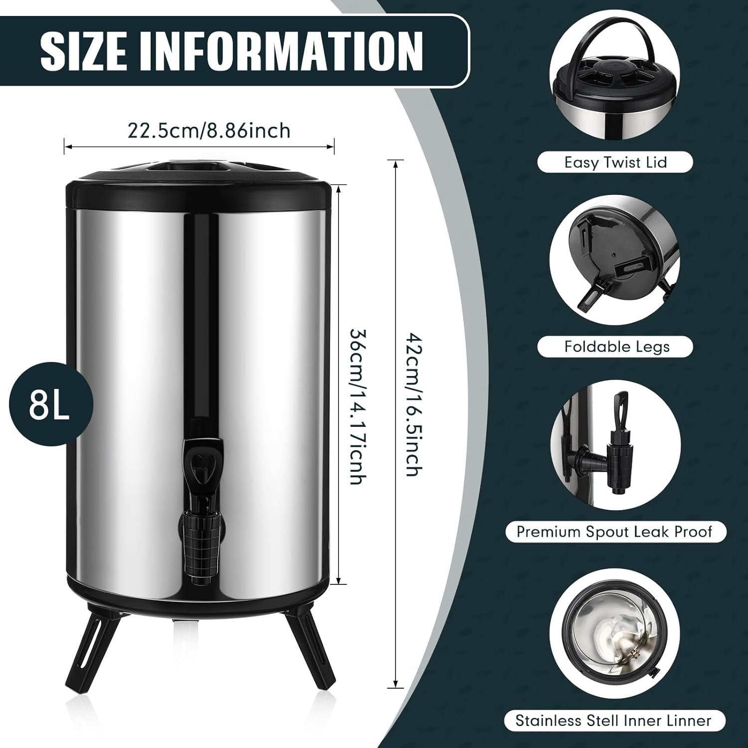 Drinking Experience and Ideal Capacity: the insulated beverage dispenser is designed with double insulated polypropylene inner and top spiral double insulated drum cover, whether cold or hot, it will stay at the desired temperature for hours, the tea dispenser with spout has a large capacity of about 270 oz/8 L, and are about 14.17 x 8.86 inches/ 36 x 22.5 cm, allows you to serve a large crowd without the need for constant refills, suitable for parties and gatherings, and other social event