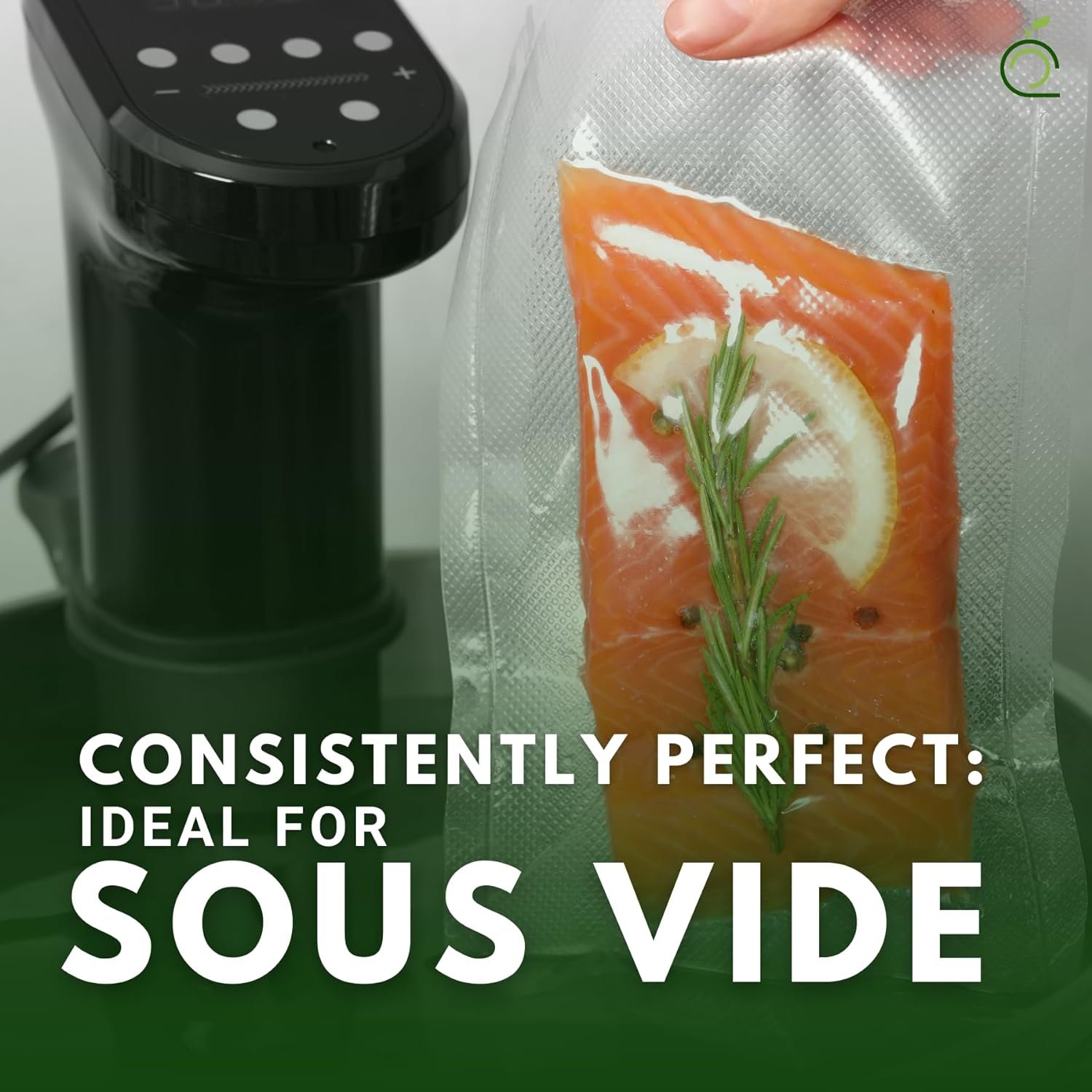 Airtight, honeycomb-embossed vacuum sealer bags help cook your food evenly and efficiently, locking in flavors!