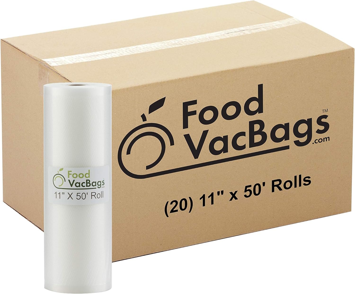 20-11″ x 50′ FoodVacBags Embossed Vacuum Sealer Rolls for Food Saver Machines, Bulk Case, Commercial Grade Food Safe, BPA Free Multi-Layer Construction