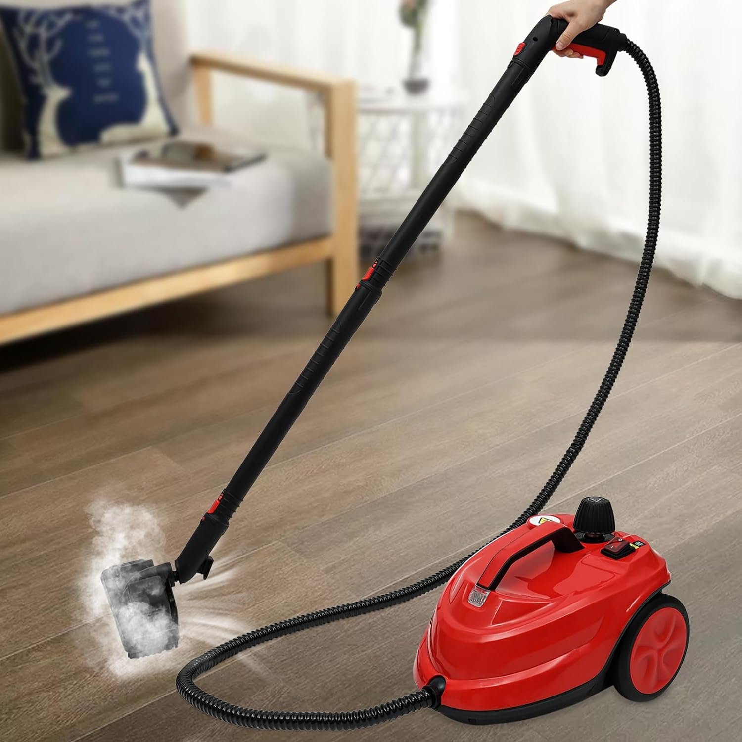 HIGH EFFICIENCY & HIGH TEMPERATURE:The 2000W steam cleaner can be quickly warmed up (about 8 minutes) to produce high temperature and powerful steam at 320°F, coupled with the high pressure steam pressure of 5 Bar, it can quickly remove stubborn stains/surface dirt under high temperature and high pressure conditions.