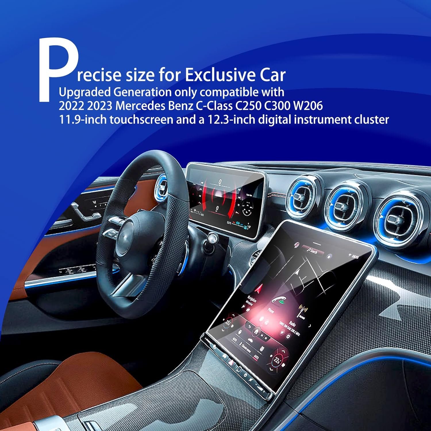 【Accurate Size】For 2022 2023 2024 C class C300 W206/2023 2024 GLC-Class X254/2023 2024 AMG C43/2024 AMG C63 11.9 Inch Center Display Touch Screen & 12.3 Inch Instrument Cluster central information display like the picture show.2024 mercedes benz c300 screen protector de pantalla de mercedes c300 2023 mercedes benz glc 300 screen protector(Not For GLC Coupe & EQE sedan)