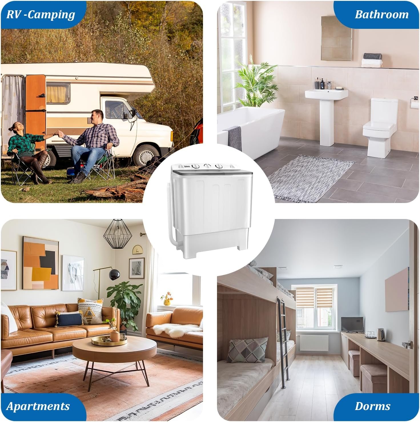 👕Large Capacity: Despite its small size, the washing tub has a rated capacity of 13 lbs and the spinner dryer has a capacity of 9 lbs. Perfect for apartment.Get your clothes clean and fresh in no time.