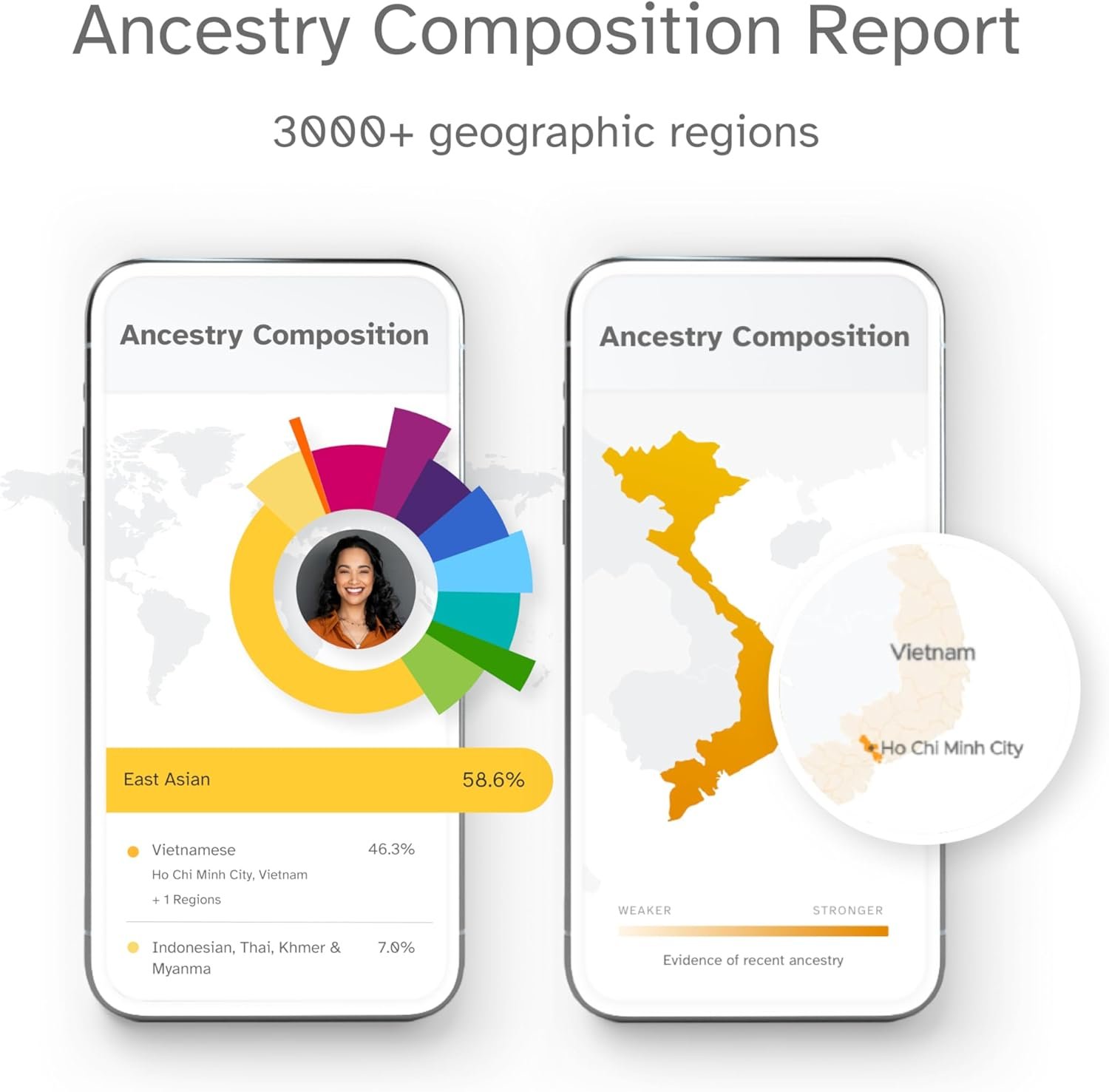 WHAT YOU GET: At-home DNA test kit with access to 80+ personalized reports. Our innovative ancestry composition estimates your ancestry to the 0.1% across 3000+ geographic regions. Learn when your most recent ancestors from each population lived. Opt in to find DNA relatives and automatically build your family tree. Find out what makes you unique with personalized traits reports.