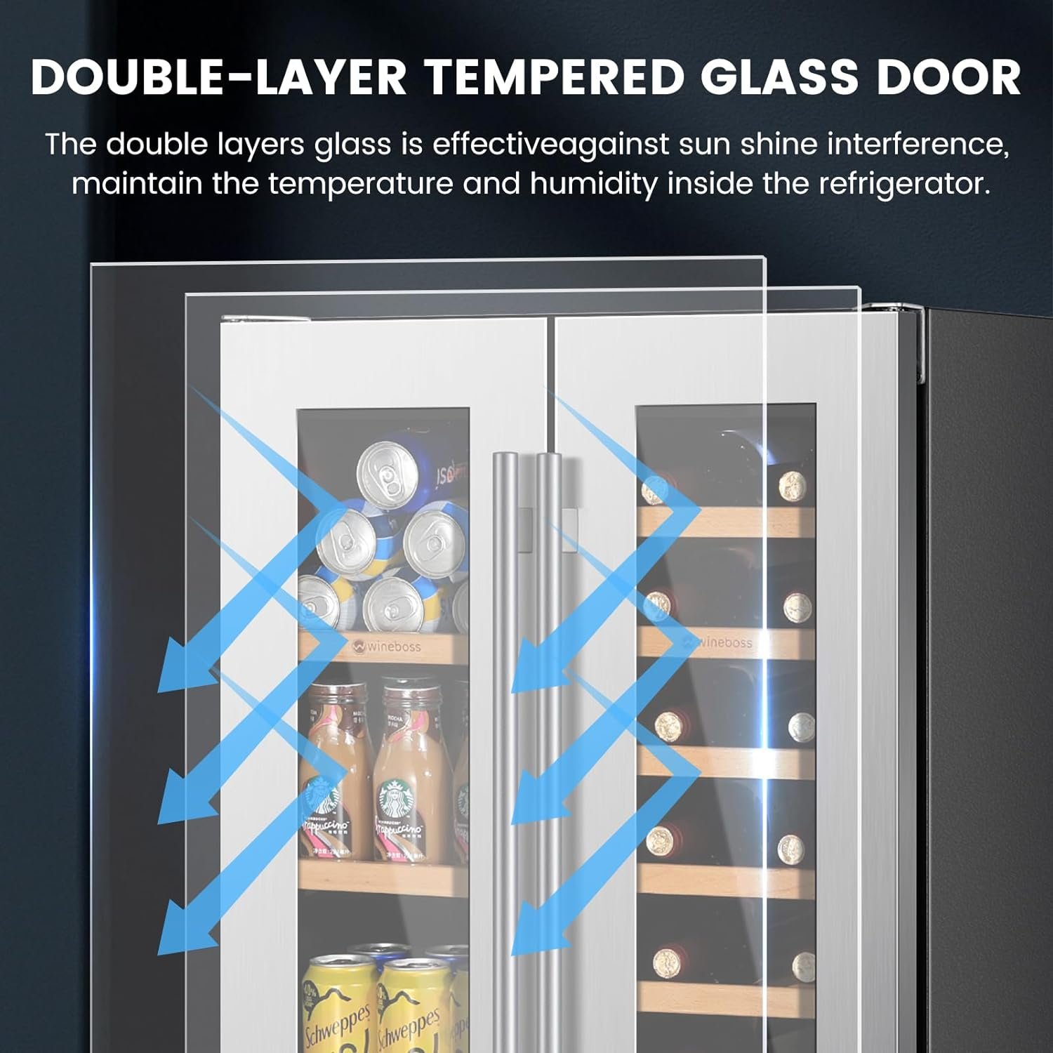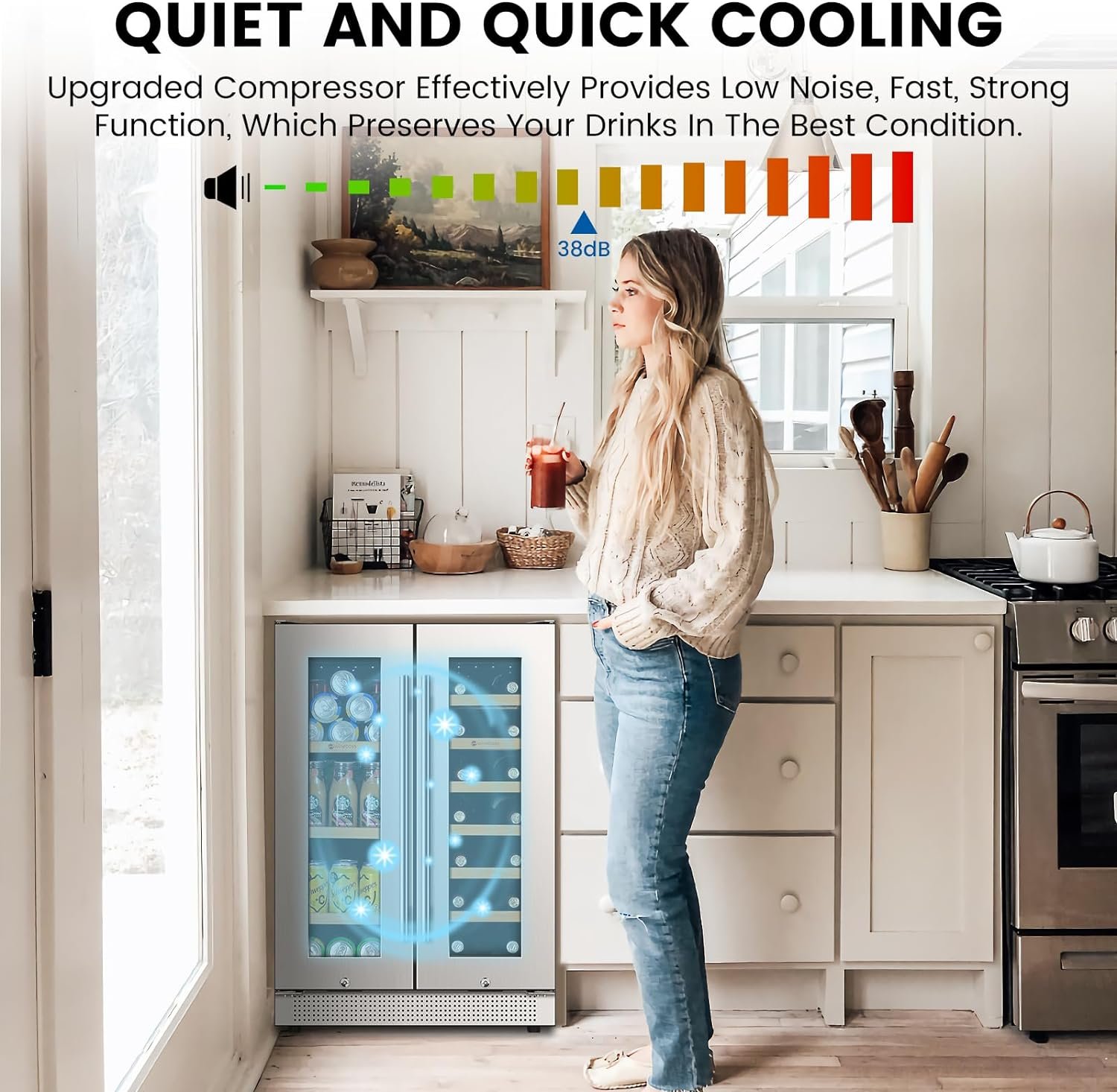 【Dual Temp Zone】Upper zone ranges from 35-50°F, good for beverage, and lower zone is 41-64°F for your various wine. Based on the upgraded powerful compressor technology, the humidity auto control(50-80%), no matter how hot or cold it gets outside. Lets you customize an optimal environment for your wine of red, white, Pinot or Champagne. Temp and humidity stay consistent, help keep optimal for wines that taste better with age.