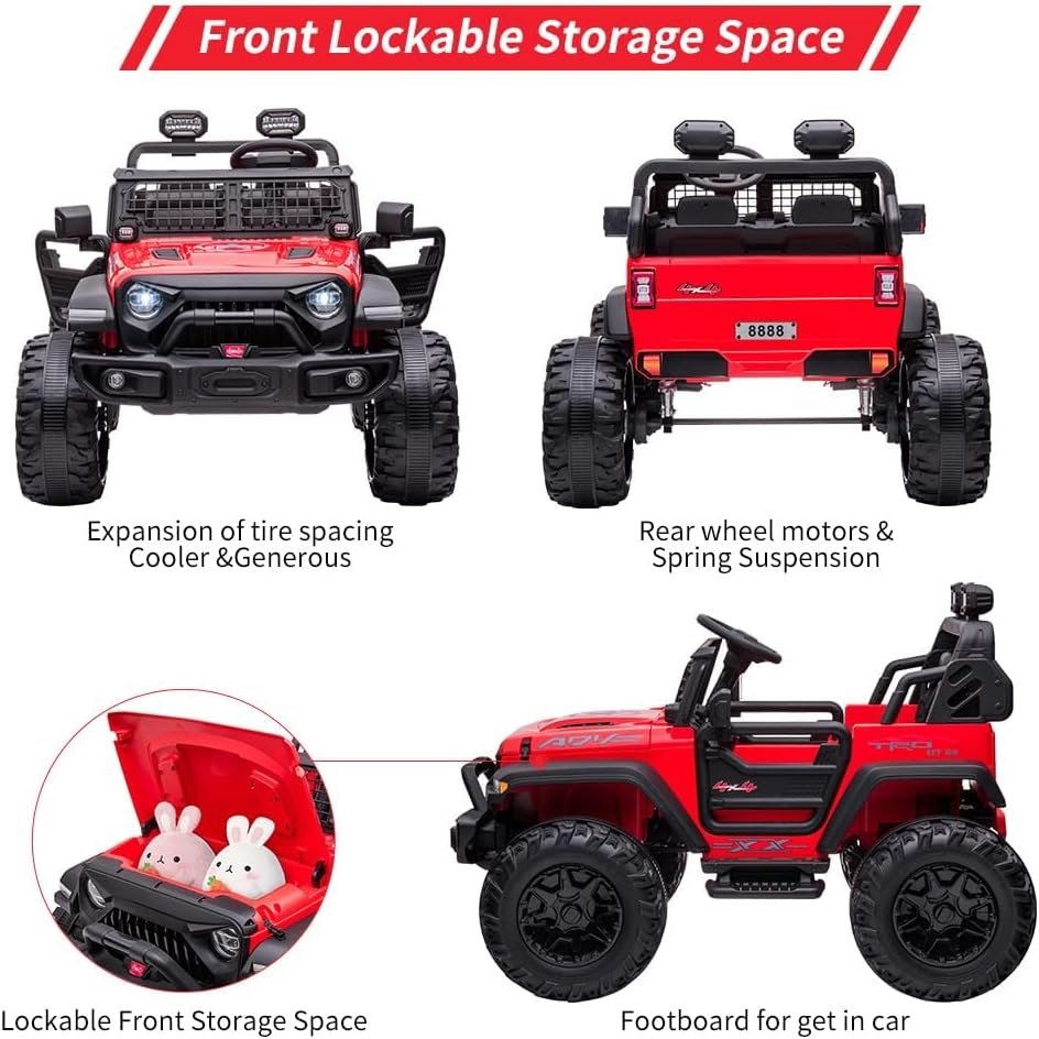 🚗Build-in Fun–The ride on vehicle already assembled with MP3, USB port, FM radio, bright LED headlights and Horn, Bluetooth,Bottle Holder to provide much more funny for child. The Front storage bin will allow your kids to take toys along with them.