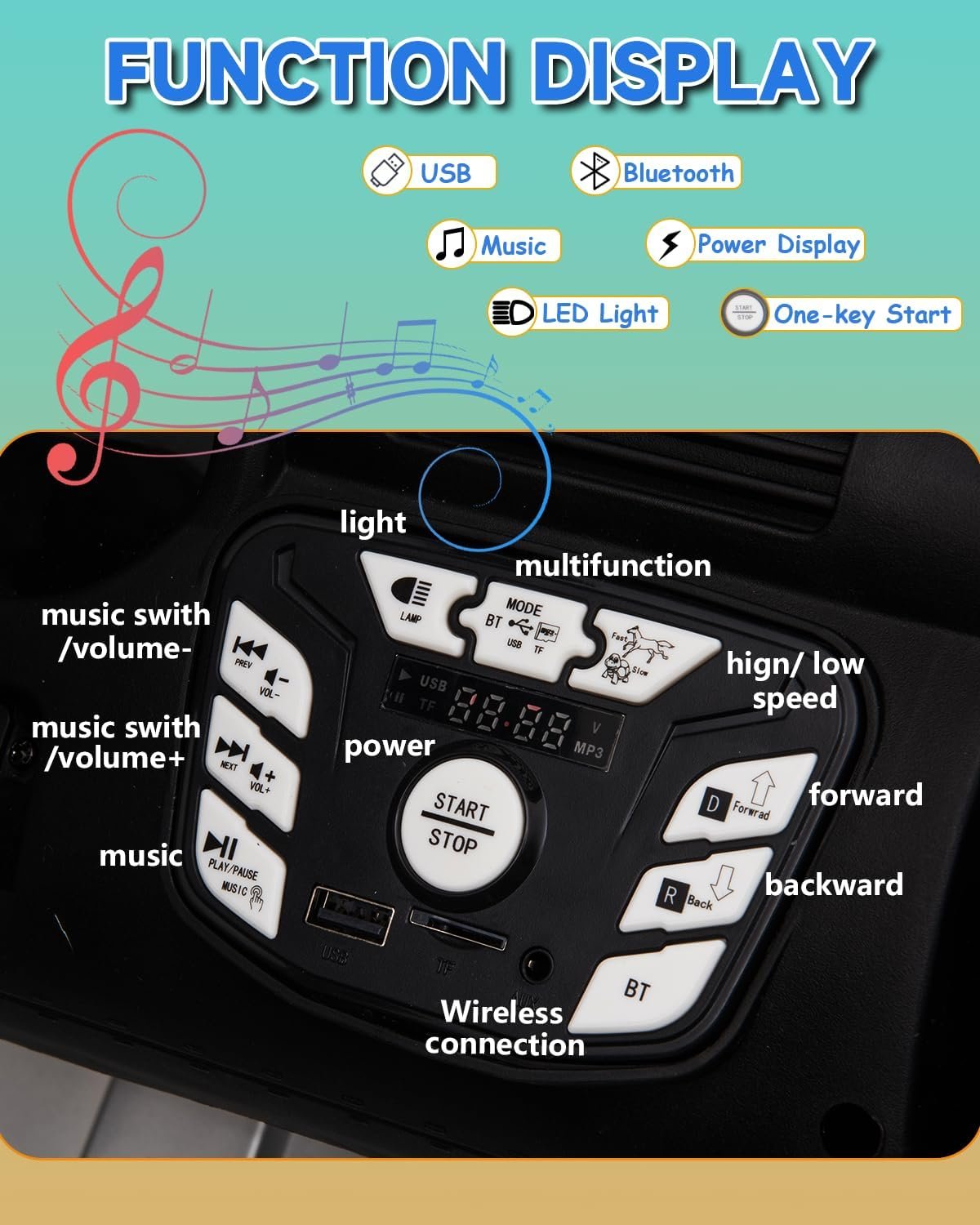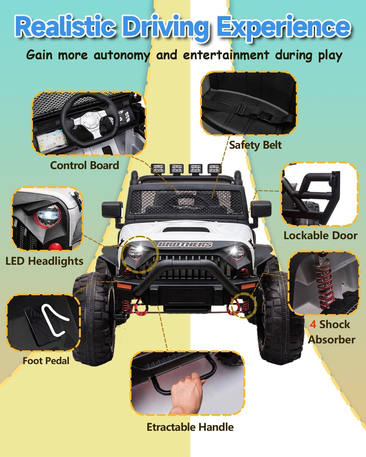 🎵Attractive & Fun Function: Beyond the thrill of driving, our kids ride on truck is made of safe material and equipped with LED headlights for added visibility and lockable doors for security, it’s a real driving experience. Plus, 24v ride on for Kids features Bluetooth, built-in music and USB, allowing your child to create their own musical journey while cruising.
