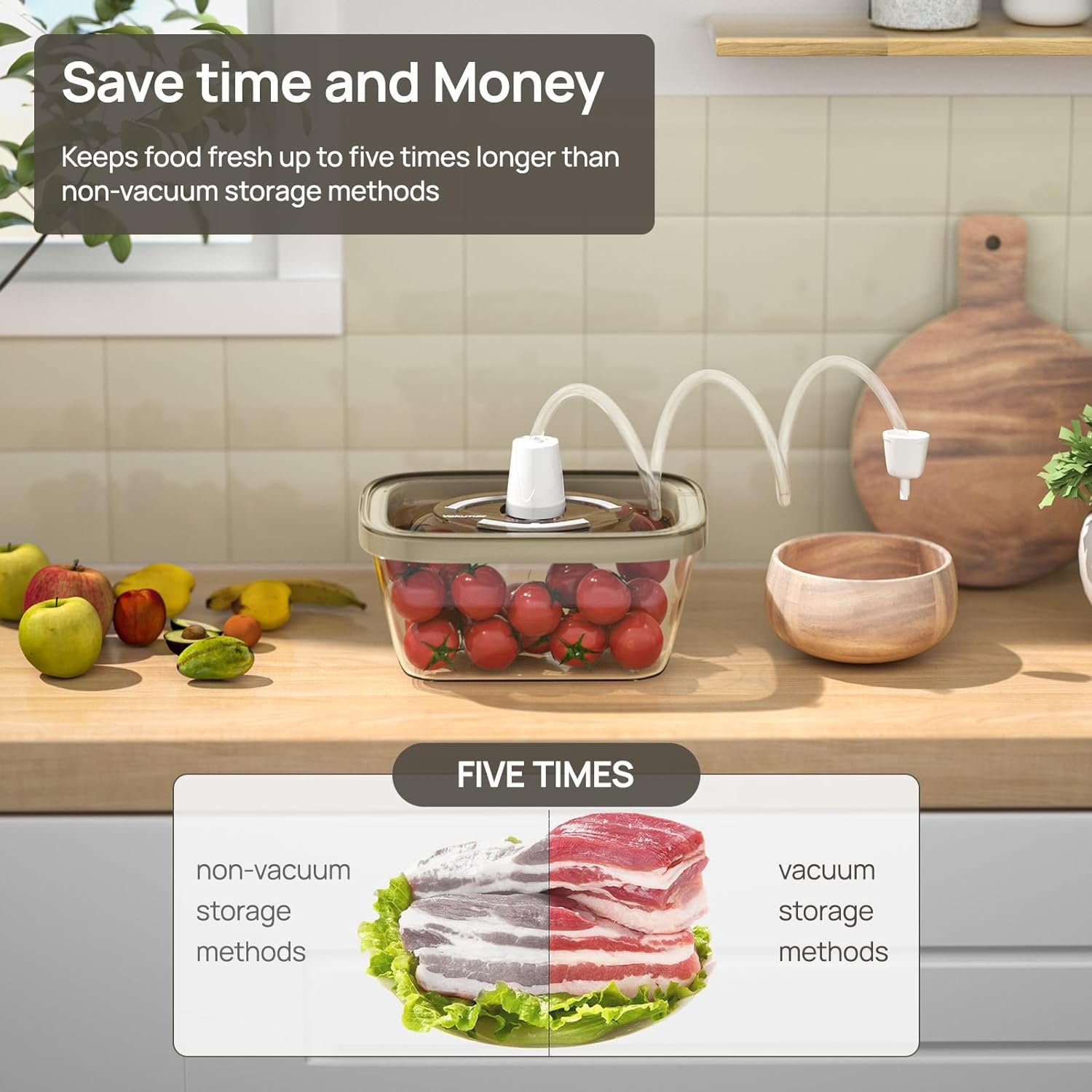 💡【Vacuum Time Indicator & Wide range of use】Vakumar marinade container are two time indicator on the lid of glass containers. The short one is the month and the longer one is the date.You can clearly know the time of your vacuum time, to prevent the food from spoiling beyond the effective shelf life of the food. You can take it with you when you go out for spring outings, camping, travel, and picnics. Make sure your ingredients are fresh and delicious.