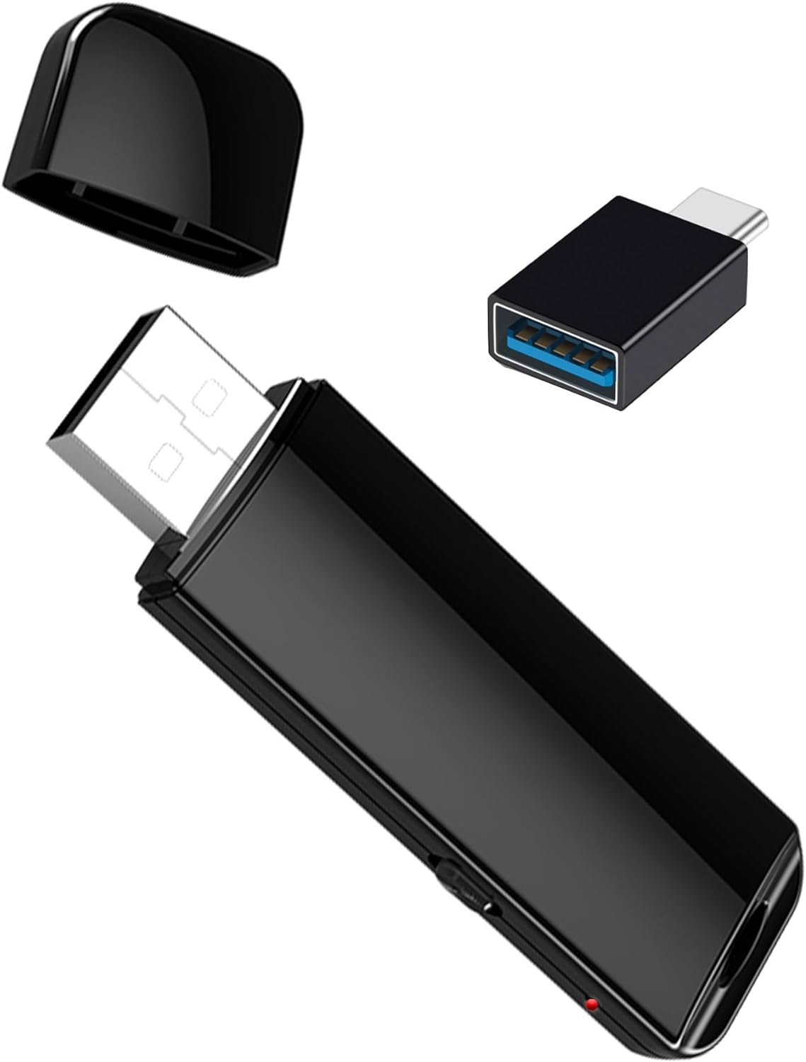 32 GB Large Memory & loop record – The USB voice recorder flash drive boasts 32 GB memory. And what makes it special is the sound recorder features loop recording, so it will delete the earliest files when the memory runs out to make sure the latest audio files saved successfully. [note: back up those important and valuable audio files in time]24 Hour Continuous Recording – The digital voice recorder contains a 120mah battery which is rechargeable. So Recording 24 hours non-stop is no picnic.Voice Activated Recorder – Voice activated recorder records when the sound is detected. With voice activation function, you can save the flash drive’s memory, save the audio recorder’s power and most importantly, never miss an important moment.Plug and Play – With one key operation, you can start recording and save recording.WAV Audio Format – The digital voice recorder save the recording in the form of WAV rather than MP3.Throw in one OTG Adapter as a present – To maximize the potential of this USB voice recorder flah drive, we throw in a OTG Adapter as a gift.