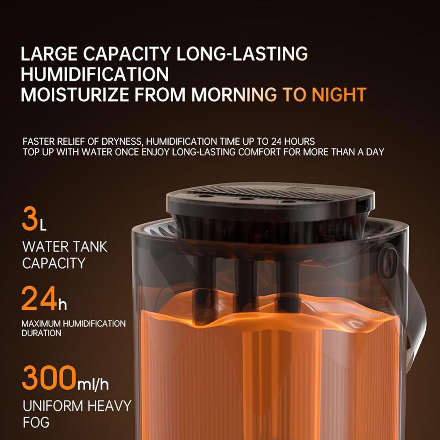【3D Circulating Humidification】3L Large capacity for extended humidifying, ideal for bedrooms and home use. Enjoy long-lasting humidifying without frequent refills.