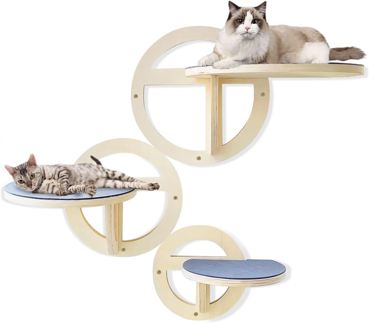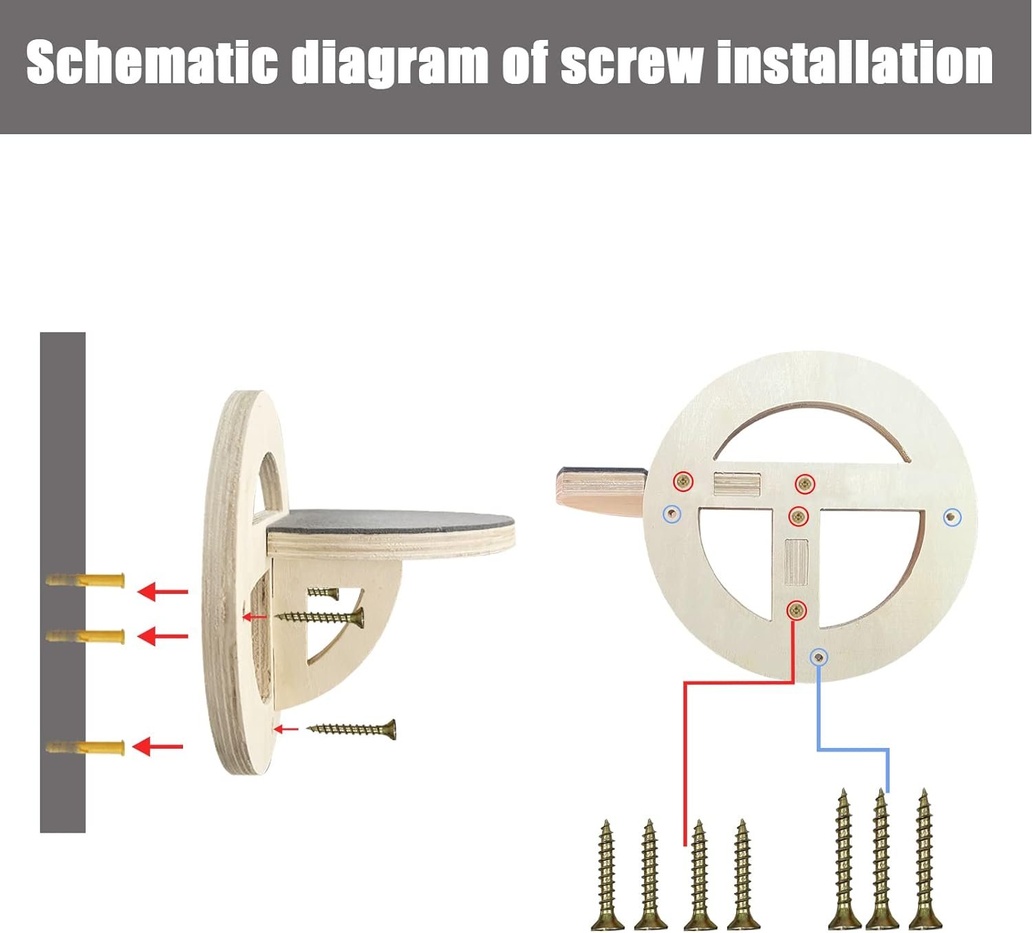 Easy to Install and Use: Our cat wall furniture is equipped with complete accessories, you can easily complete assembly and enjoy assembly fun. Our wooden boards have reserved holes for your installation. You only need to nail it on the wall with tools. It contains large screws and small screws. The anchor screw is installed in the wall. The small screw is installed in the solid wood,refer to the prompts of the picture for assembly.Such a perfect set of cat climbing racks are installed.