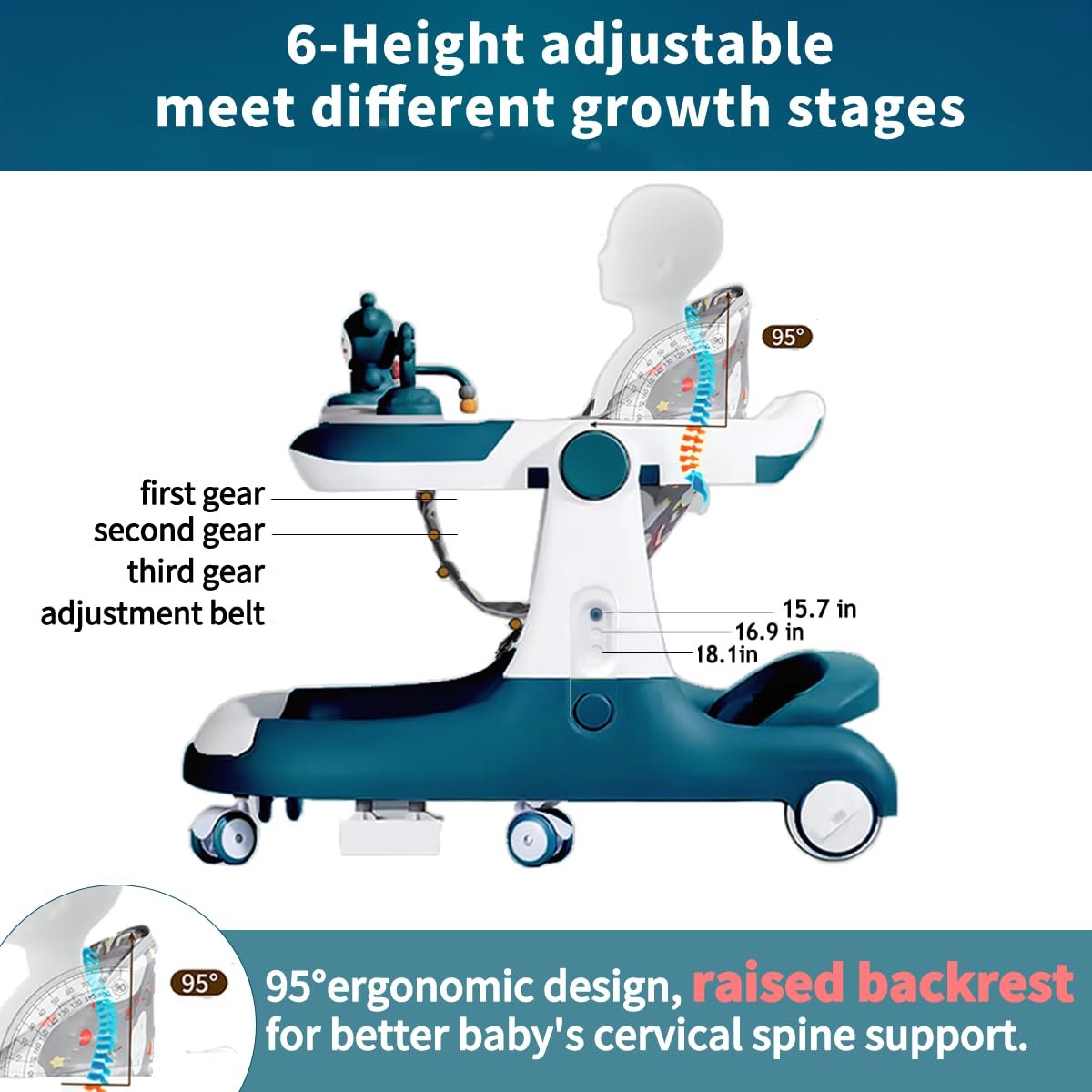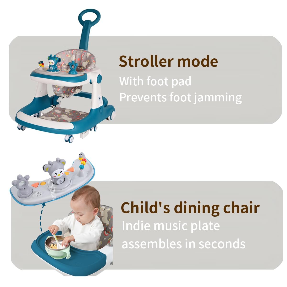 🍼【Multi-functional Design】Baby walker can be converted into a baby dinner chair by removing the music tray. It also has a footpad, push handle that can turn it into a baby stroller.