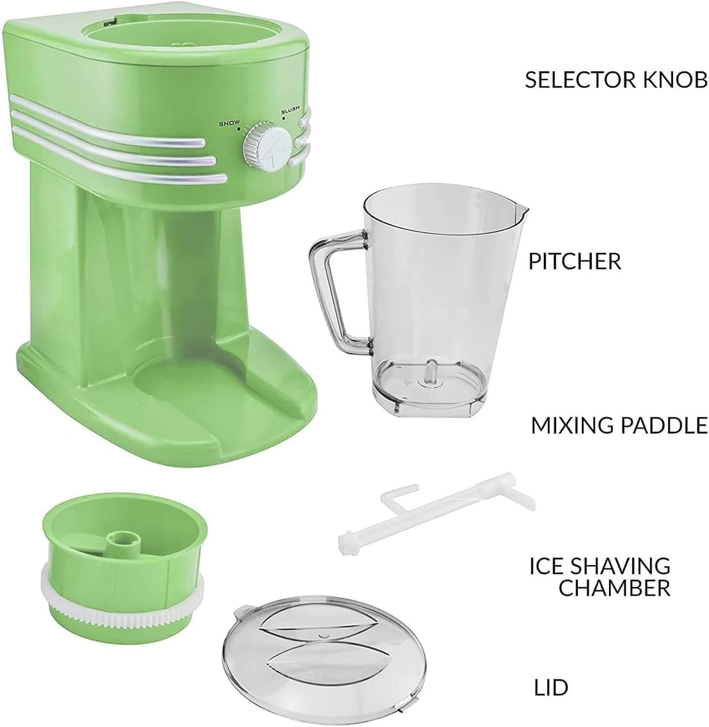 Easy To Assemble & Clean:Detachable pitcher, mixing paddle, ice shaving chamber, lid, more thorough and convenient in cleaning, also more convenient for you to carry to any party.