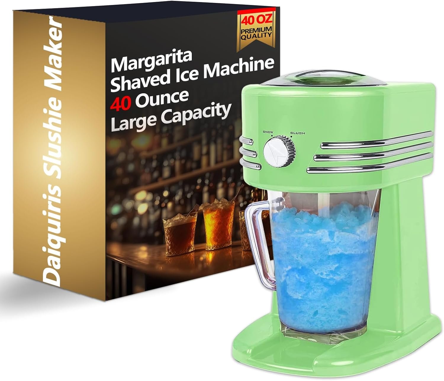 Ideal Ice: Our frozen drink machine is equipped with a powerful motor and stainless steel blades to shave perfectly smooth ice cubes as well as snowy ice for margaritas, daiquiris, slushies, and any other iced beverage.