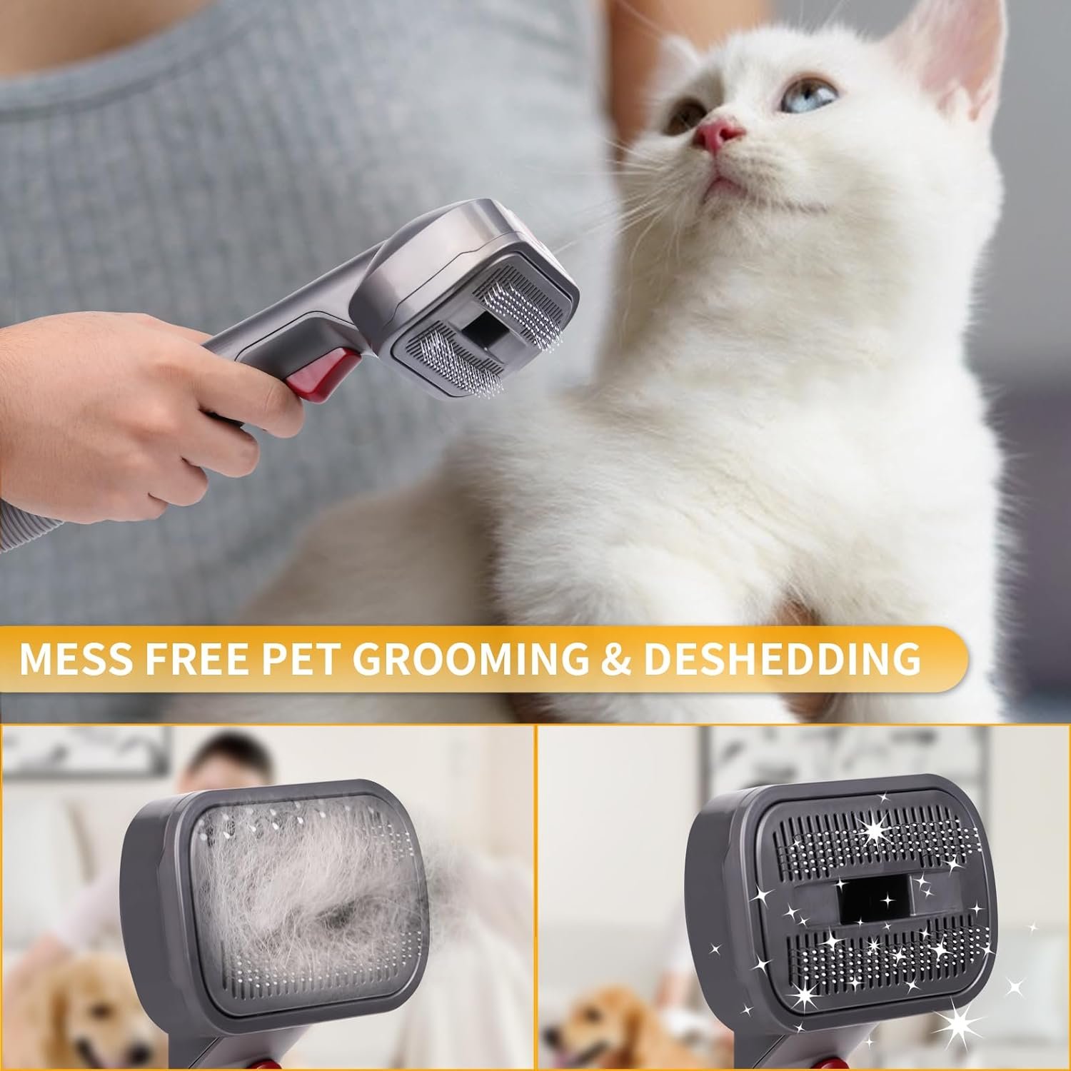During shedding seasons, your pet may shed like tons. This tool set is a must have to solve the shedding problems! Just connect it to your vacuum cleaner, you can do pet grooming, deshedding & trimming at home, and vacuum the loose fur directly at the same time.
