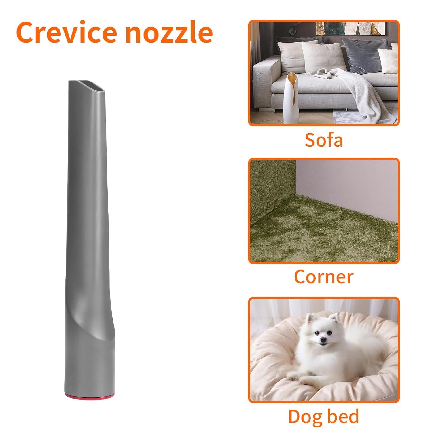 The included sofa brush and crevice nozzle help remove fur from dog cushions, dog bedsnas well as sofas, crevices, and small areas of carpets, and floor.