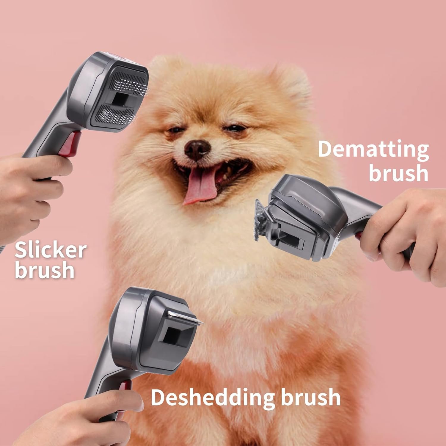 【Excellent Pet Hair Remover】This set comes with 5 attachments: The dematting brush is used for loosen tangles, deshedding brush for removing undercoat fur, slicker brush for daily combing, and crevice tool & sofa brush for collecting pet hair left on sofas, carpets & corners. The 3 grooming attachments effortlessly snap on and off, allowing for swift transition between tools.
