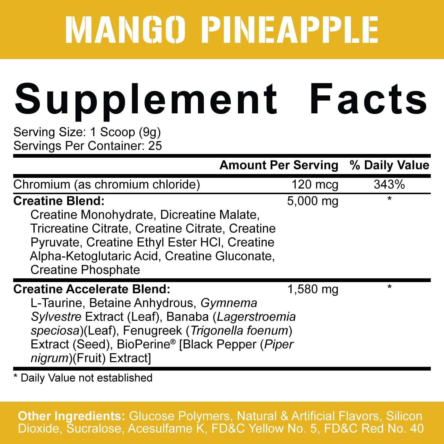 INCREASED ABSORPTION + ZERO LOADING with 1,580 mg of the Creatine Accelerate Blend. Improves absorption and utilization with Taurine, Beta Anhydrous, Gymnema Sylvestre Extract, Banaba Powder, the testosterone-boosting Fenugreek Seed Extract, and Bioperine Black Pepper.