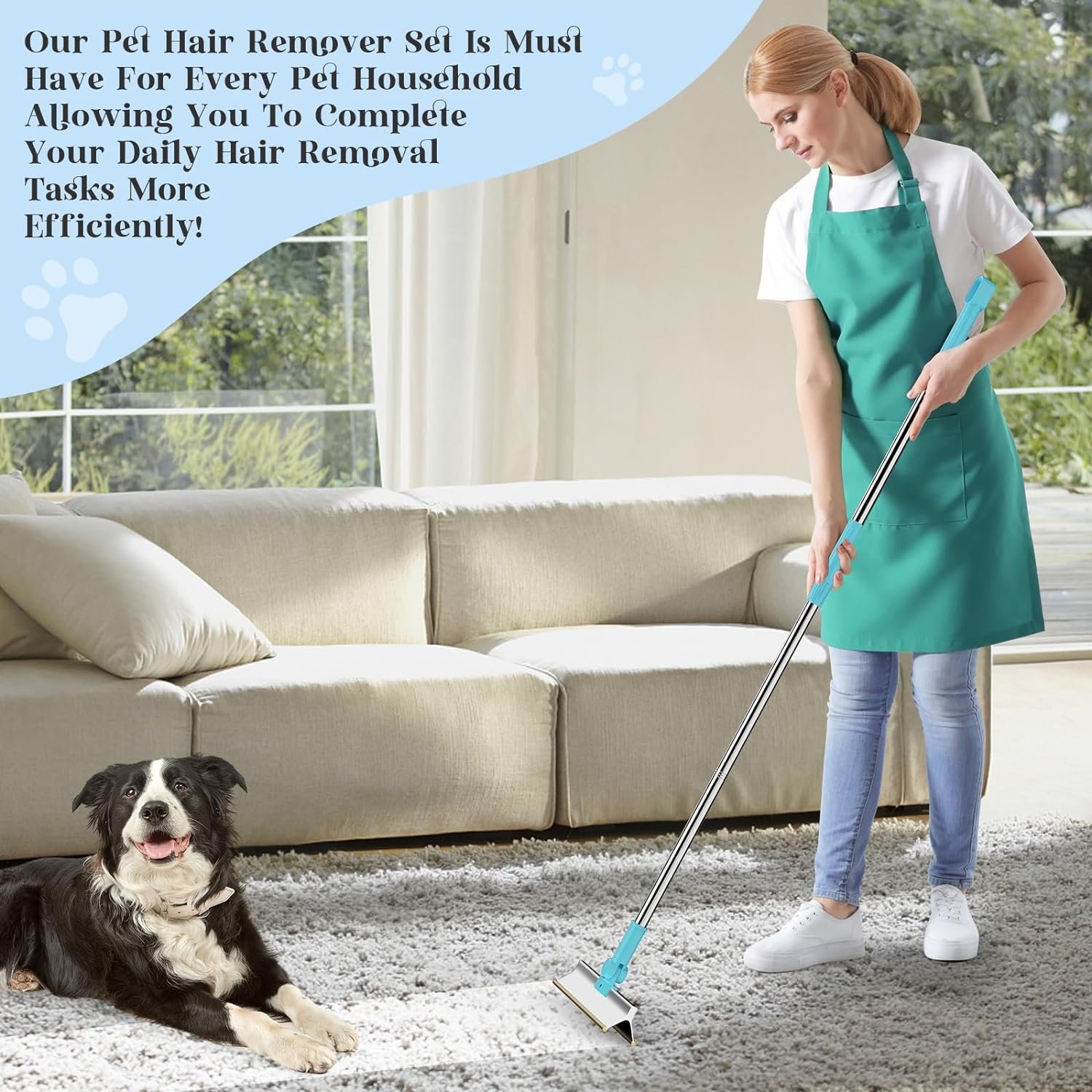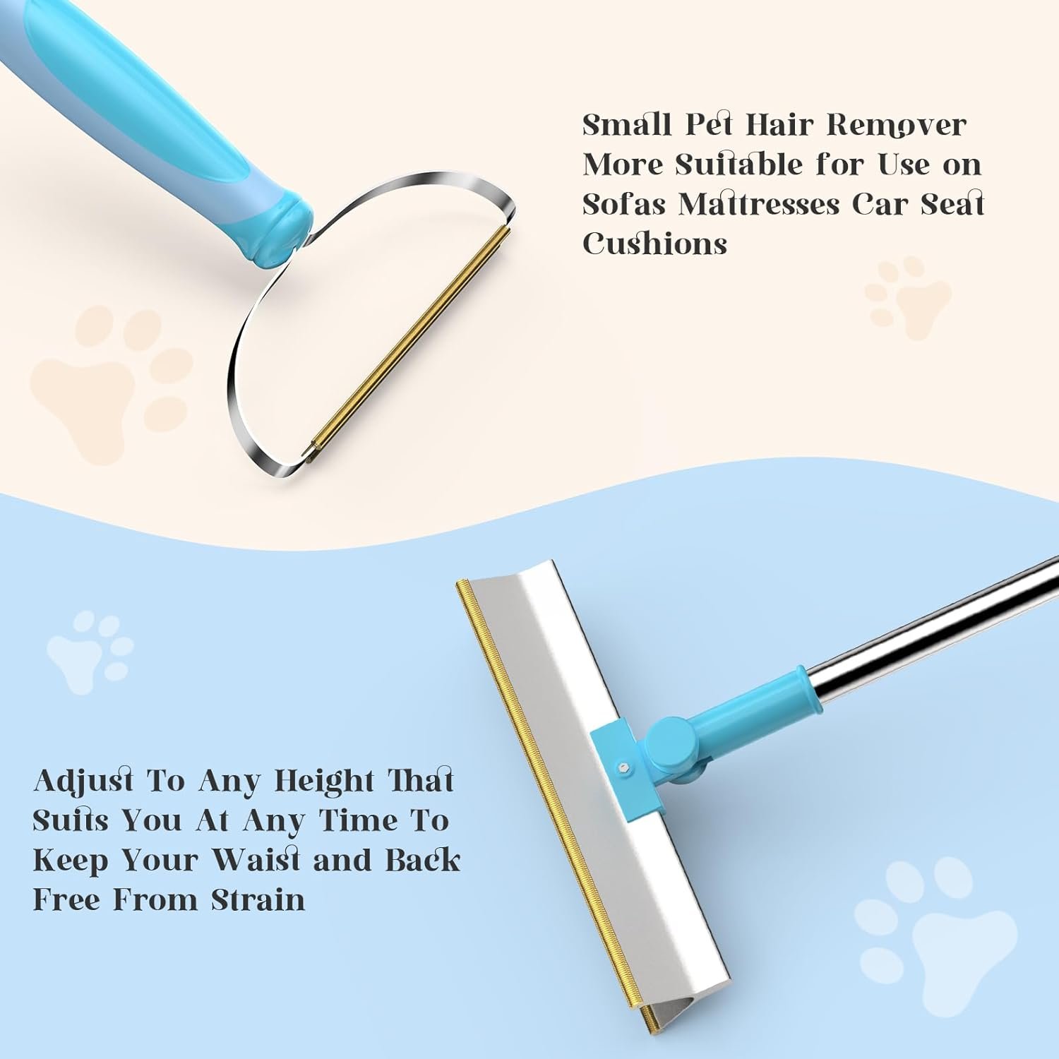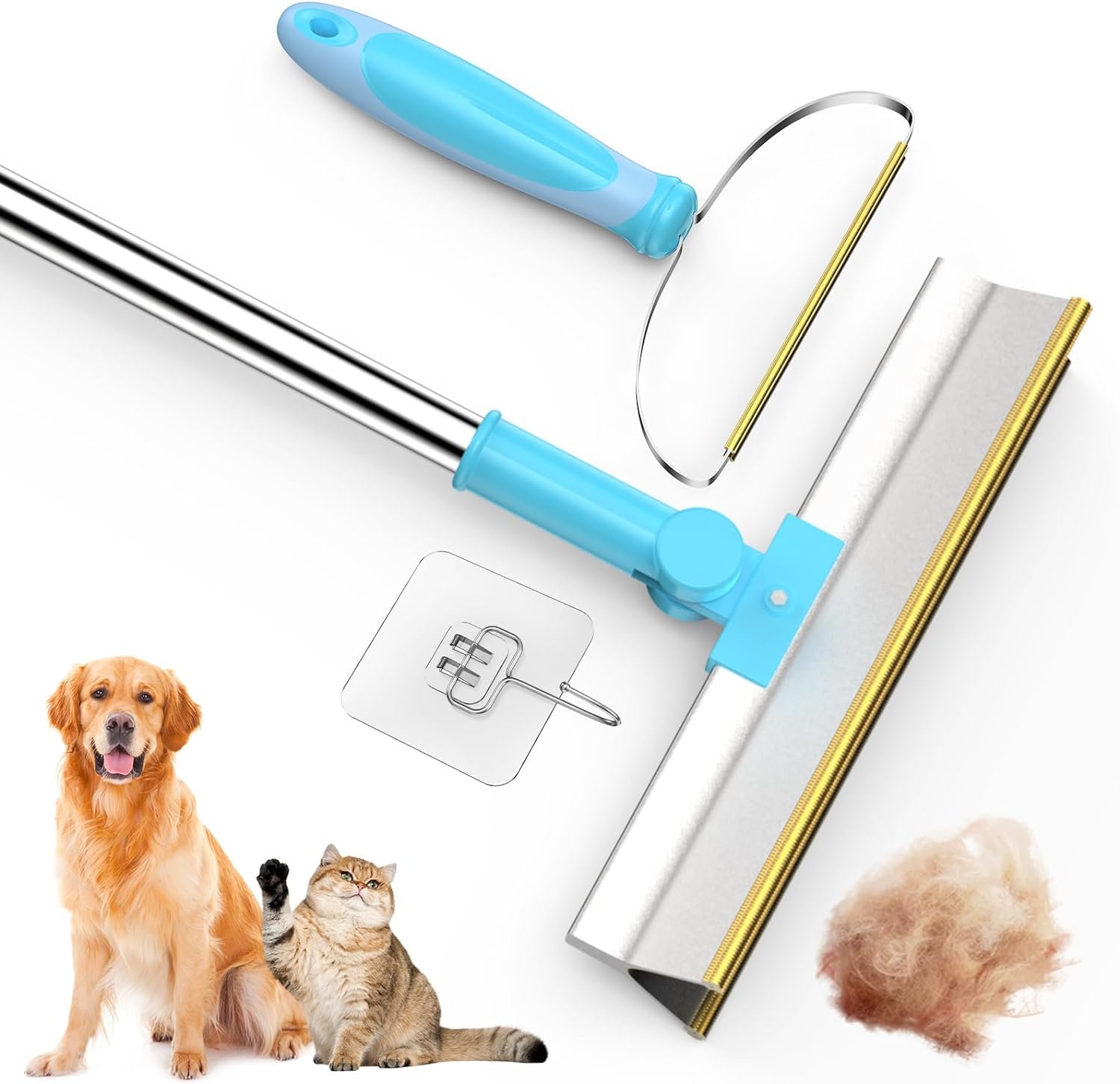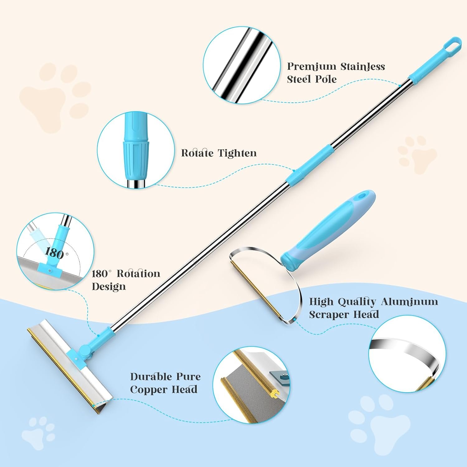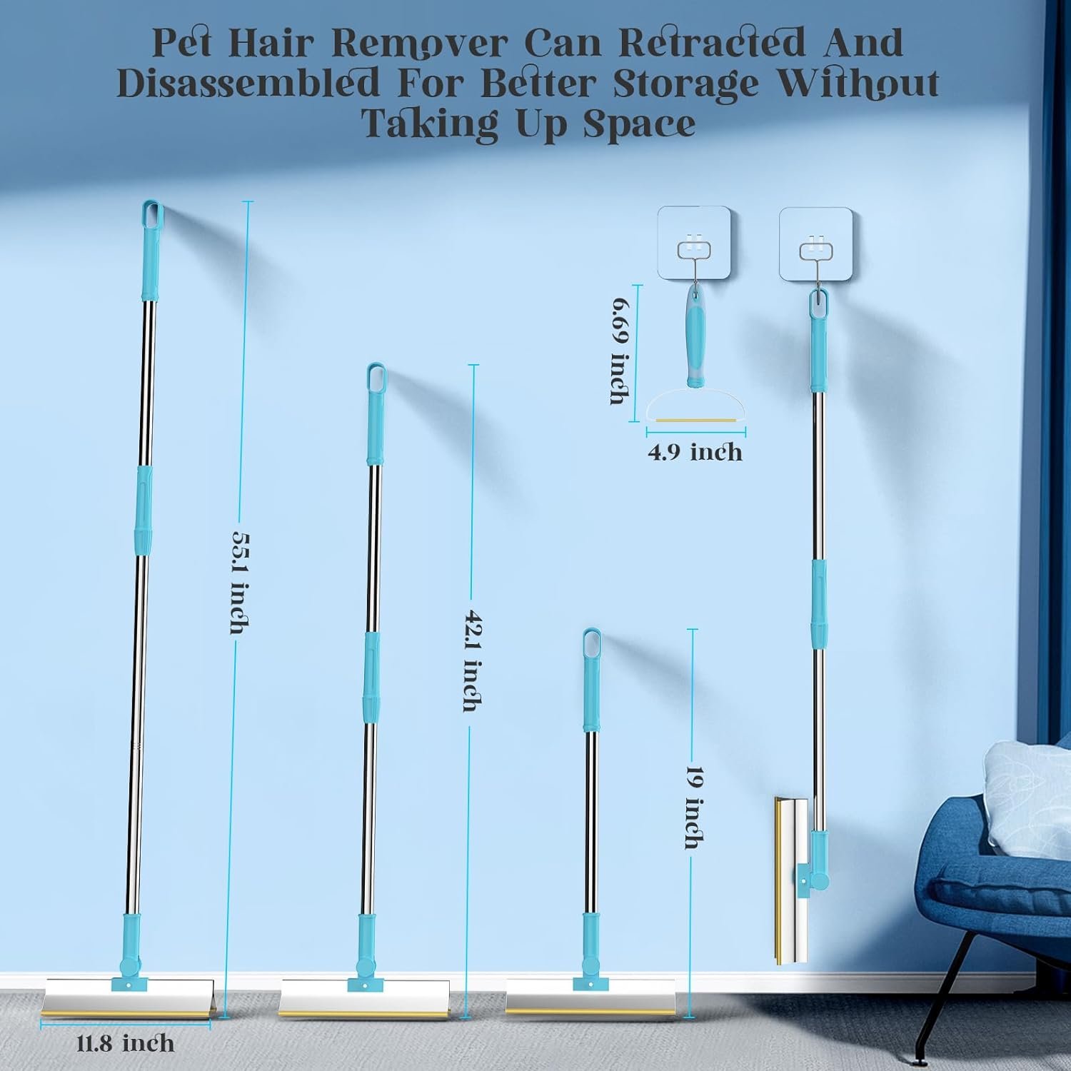 🐶🐱 𝗘𝗥𝗚𝗢𝗡𝗢𝗠𝗜𝗖𝗔𝗟 𝗔𝗗𝗝𝗨𝗦𝗧𝗔𝗕𝗟𝗘 𝗟𝗢𝗡𝗚 𝗛𝗔𝗡𝗗𝗟𝗘 𝗗𝗘𝗦𝗜𝗚𝗡 – Pet Hair Remover features a 180° rotating dog hair removal cleaning tool with three stainless steel poles that retract up to 42.1 inches or extend up to 55.1 inches to allow you to reach and clean hard-to-reach areas with ease