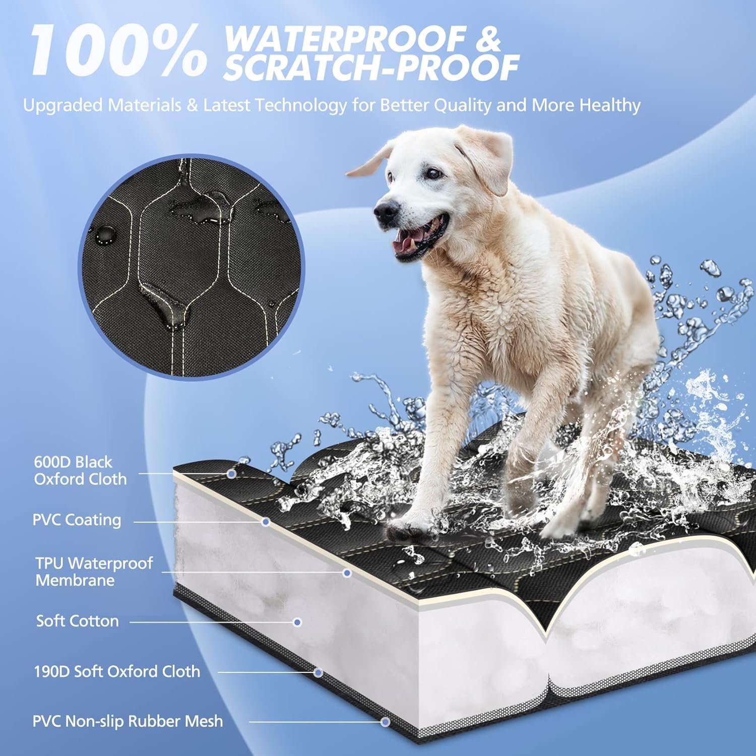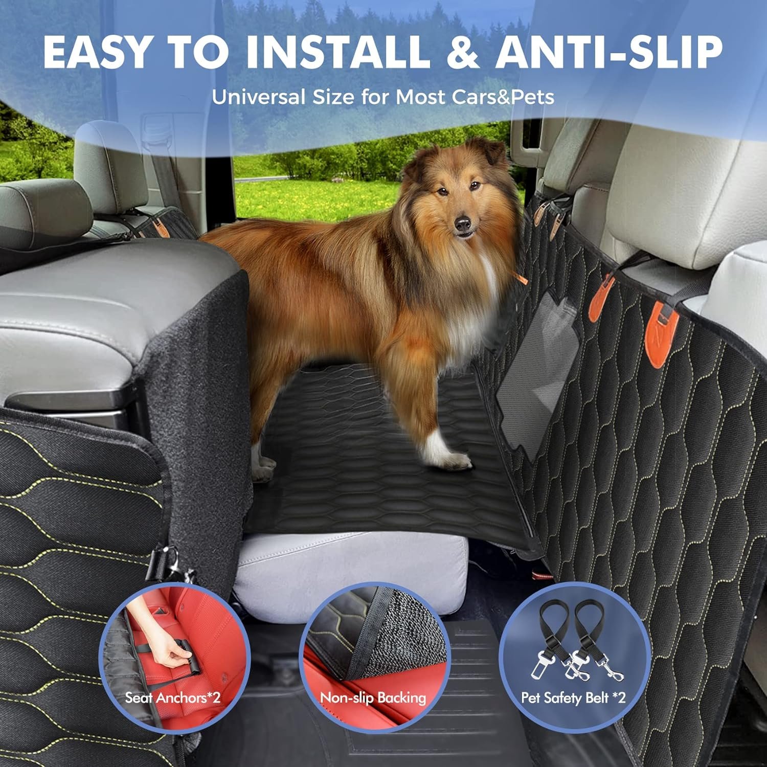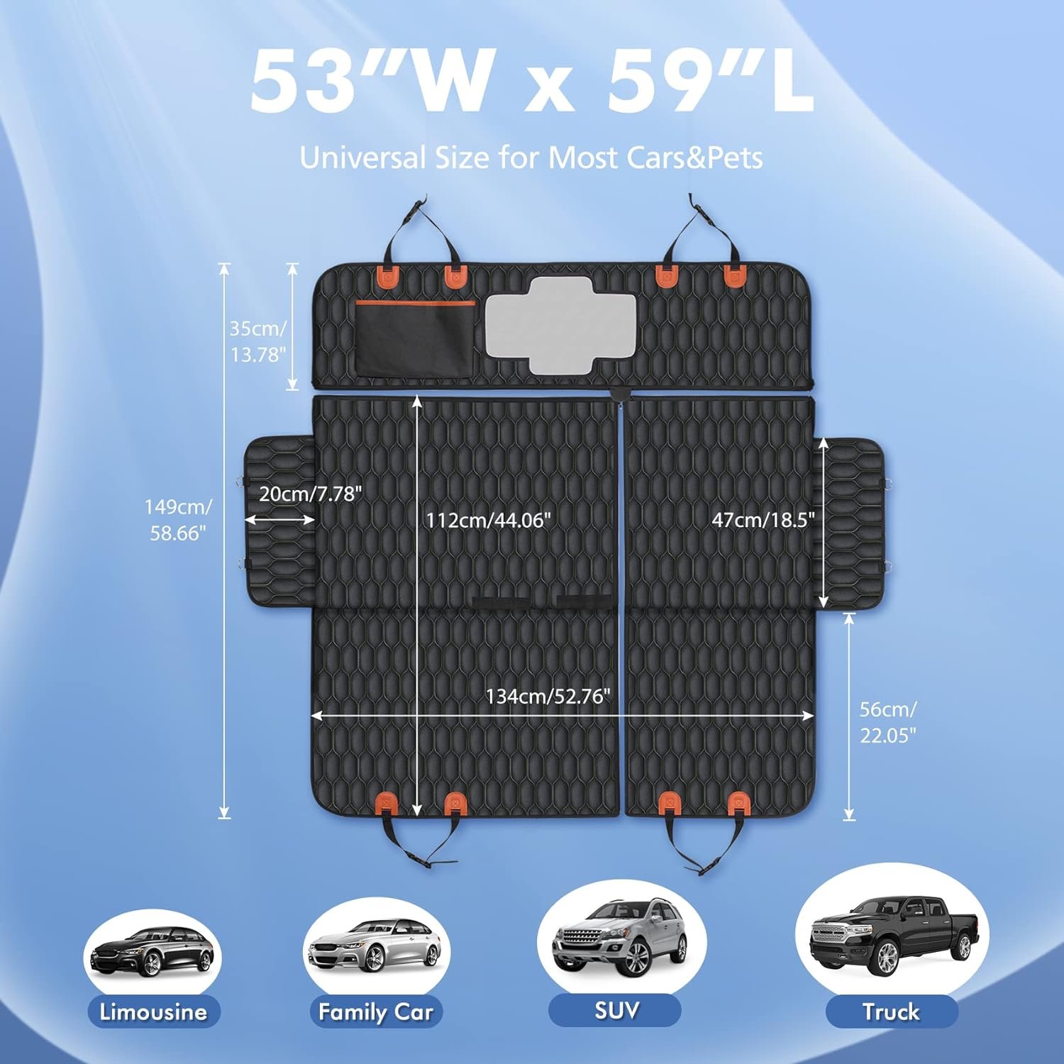 【 UPGRADED MATERIAL FOR BETTER QUALITY, ANTI-SCRATCH & 100% WATERPROOF】Crafted with 6 layers of durable cloth, our pet seat cover is designed with two waterproof layers for ultimate protection. It features a unique 600D oxford fabric with a water-resistant coating that achieves 100% waterproofing. Our cover also includes heavy stitched seams to prevent rips or tears from dog claws, ensuring long-lasting use. You can easily use a damp cloth to clean the back seat dog cover and it’s washable.