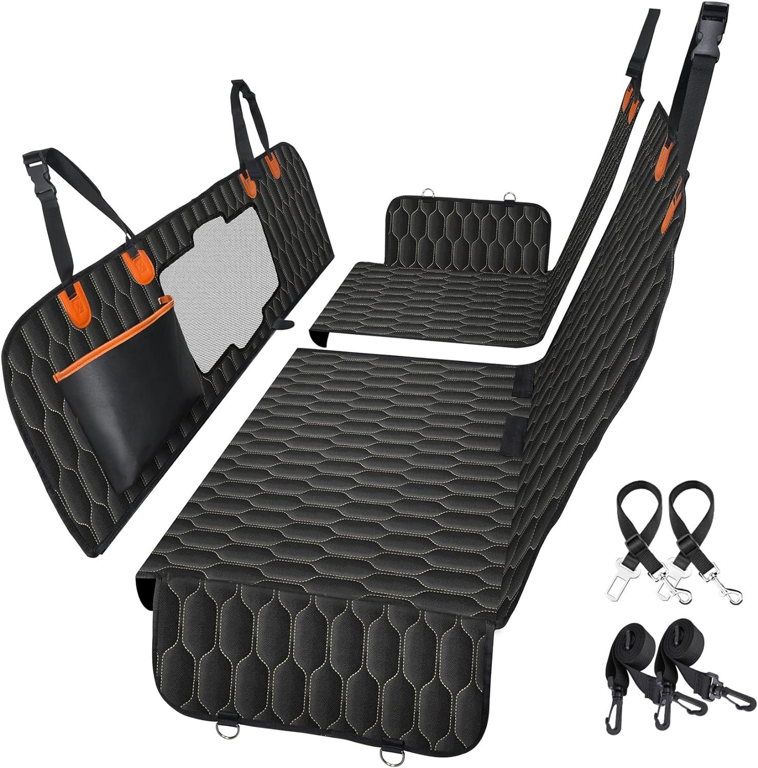 6-in-1 Dog Car Seat Cover for Back Seat, 100% Waterproof Dog Hammock for Car, Scratchproof Nonslip with Mesh Window Back Seat Cover for Cars Trucks and SUV