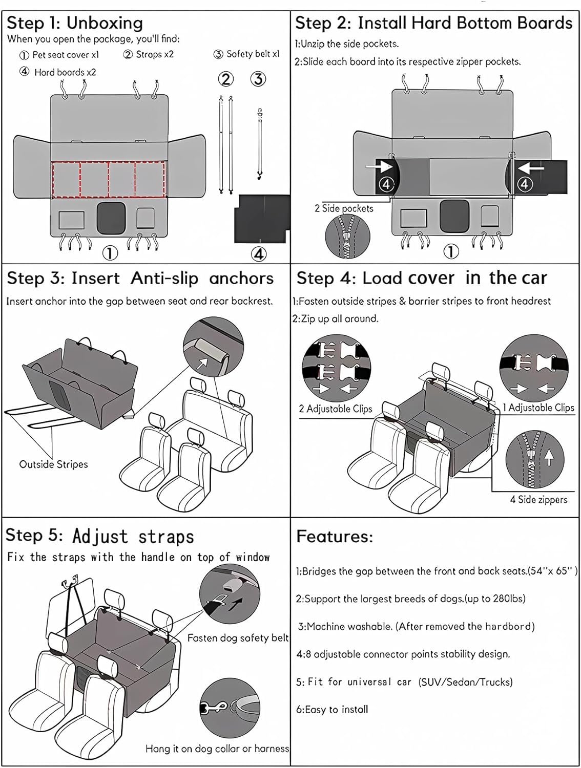 A High-Density Fiberboard At The Bottom Makes Thedog Car Seat Cover With Extender More Sturdy And Durable. The Hard Bottom Dog Hammock For Car Can Accommodate A Pet With Small/Medium/Large Size. In Addition, The Backseat Extender For Dogs Has Trapezoid Side Flaps That Provide Extra Protection For Car Door.