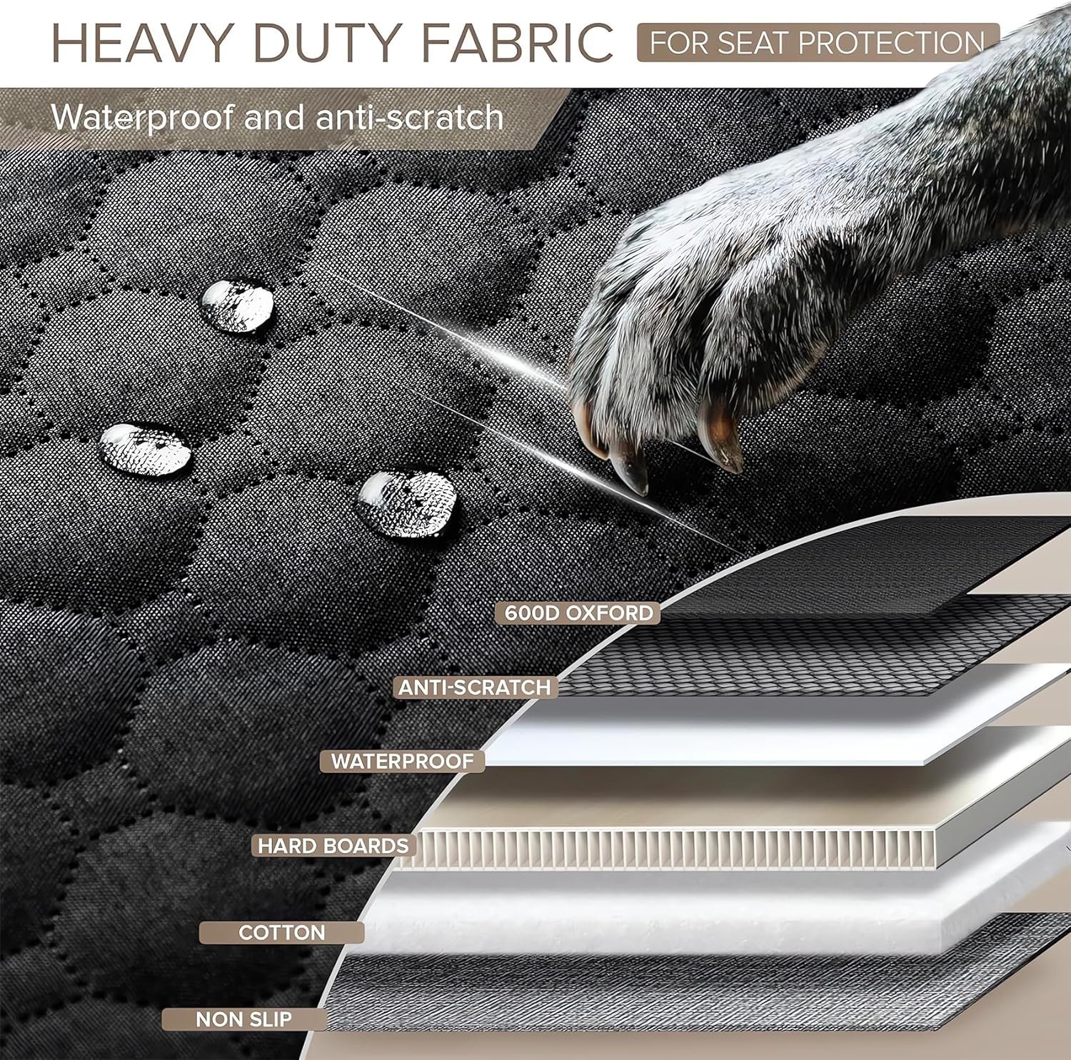Waterproof, Non-Slip And Wear-Resistant, Made Of 4-Layer Fabrics, Our Dog Car Seat Cover Is 100% Waterproof To Protect Your Seat From Mud, Liquid, Hair, Or Any Mess, Durable To Avoid Scratching Your Leather Seats, And Comfortable For Long Road Trip.