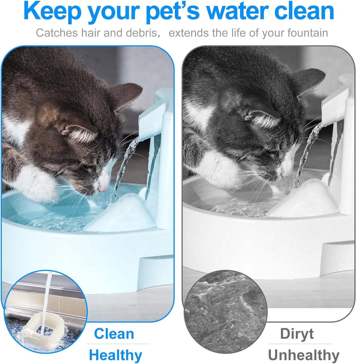 Enhanced Filtration for PET Health: this set of cat fountain filter replacement is designed to provide efficient filtration, ensuring that your pet’s drinking water remains clean, fresh, and free from impurities and heavy metals, promoting their overall health and well being, as well as helping extend the life of your pet fountain