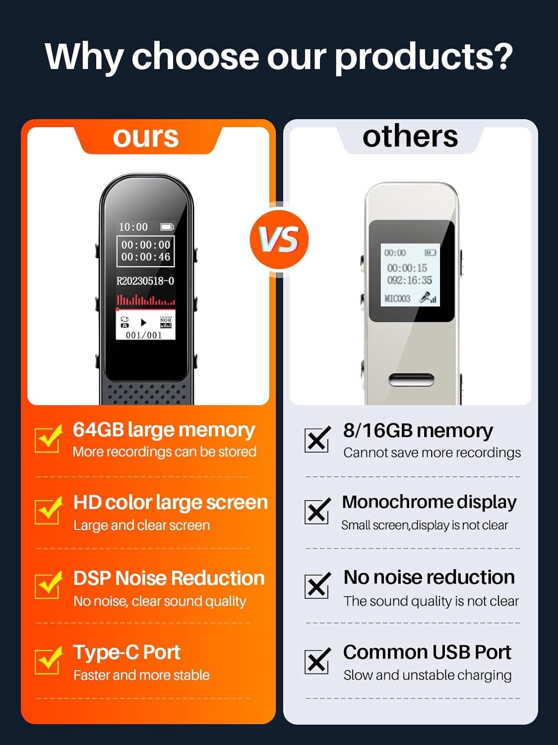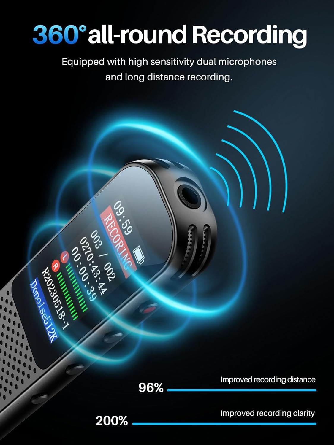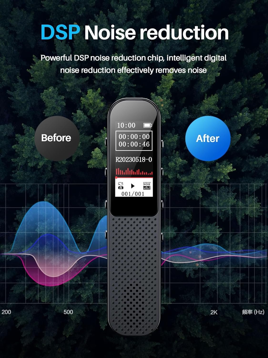 【Built in 2 Microphones & DSP Noise Reduction】 2 high-performance 360 ° directional microphones, which can more clearly capture sounds in the distance. Powerful DSP noise reduction chip, intelligent digital noise reduction, it can automatically reduce environmental noise, clear recording/playing high-quality sound. The supported bit rate is 3072kbps/1536kbps/512 kbps.