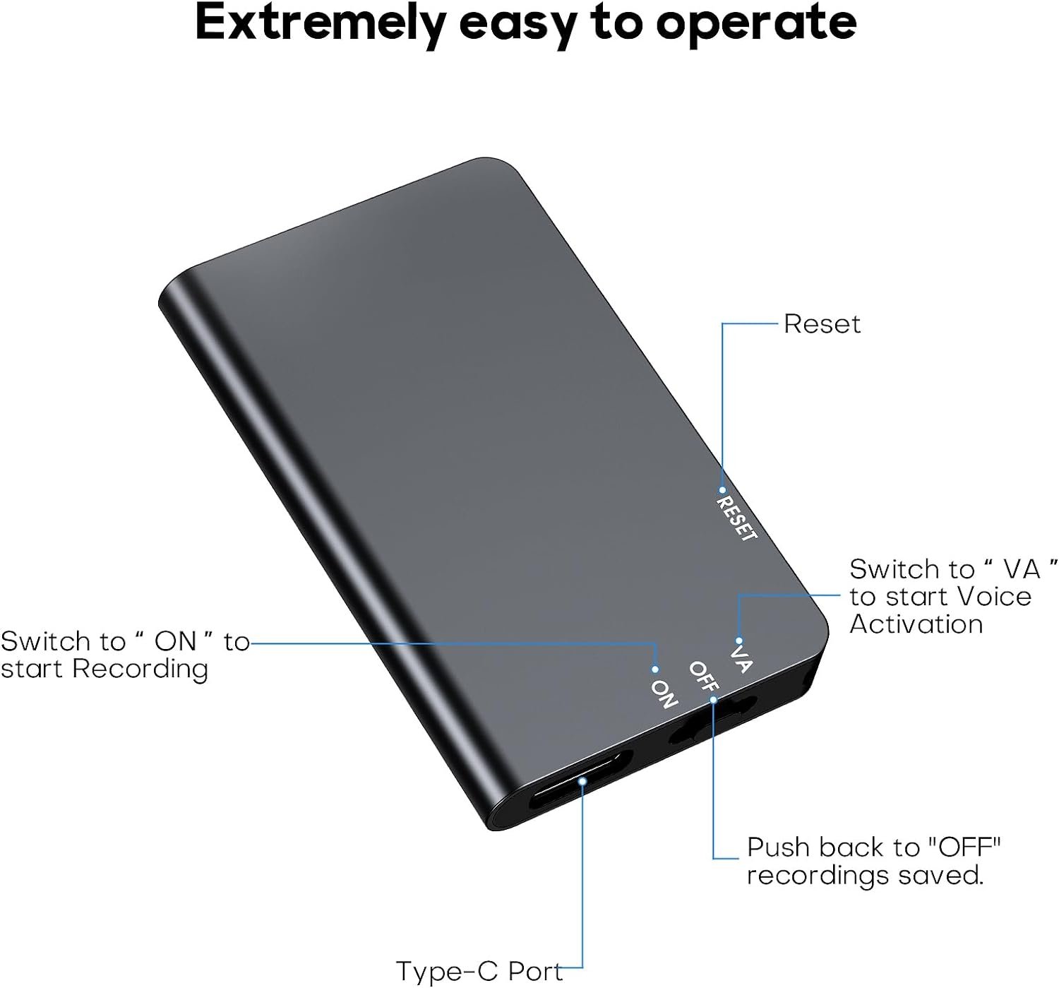 🔊【HD Sound Quality】This voice-activated recorder is more sensitive than our human ear. Clear microphone with professional recording chip and sound enhancement technology with voice enhancement. No need to worry about unclear recordings.