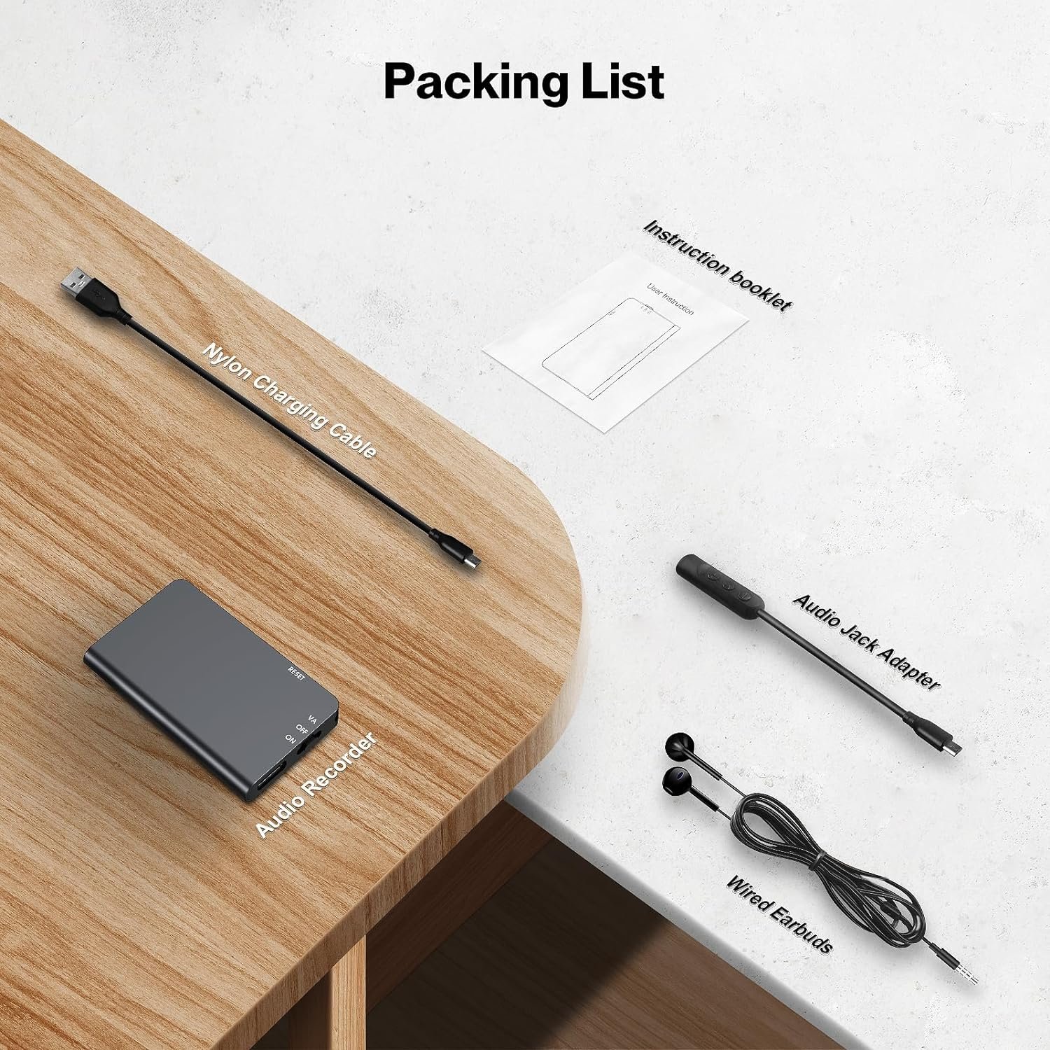 🎁【What’s in the Package】LPONGPOCUI 64GB Digital Voice Recorder Black (can also be used as MP3), Type-C port charging cable, headphone adapter, HD sound quality in-ear headphones. Hassle-free 24-month warranty and friendly customer service.