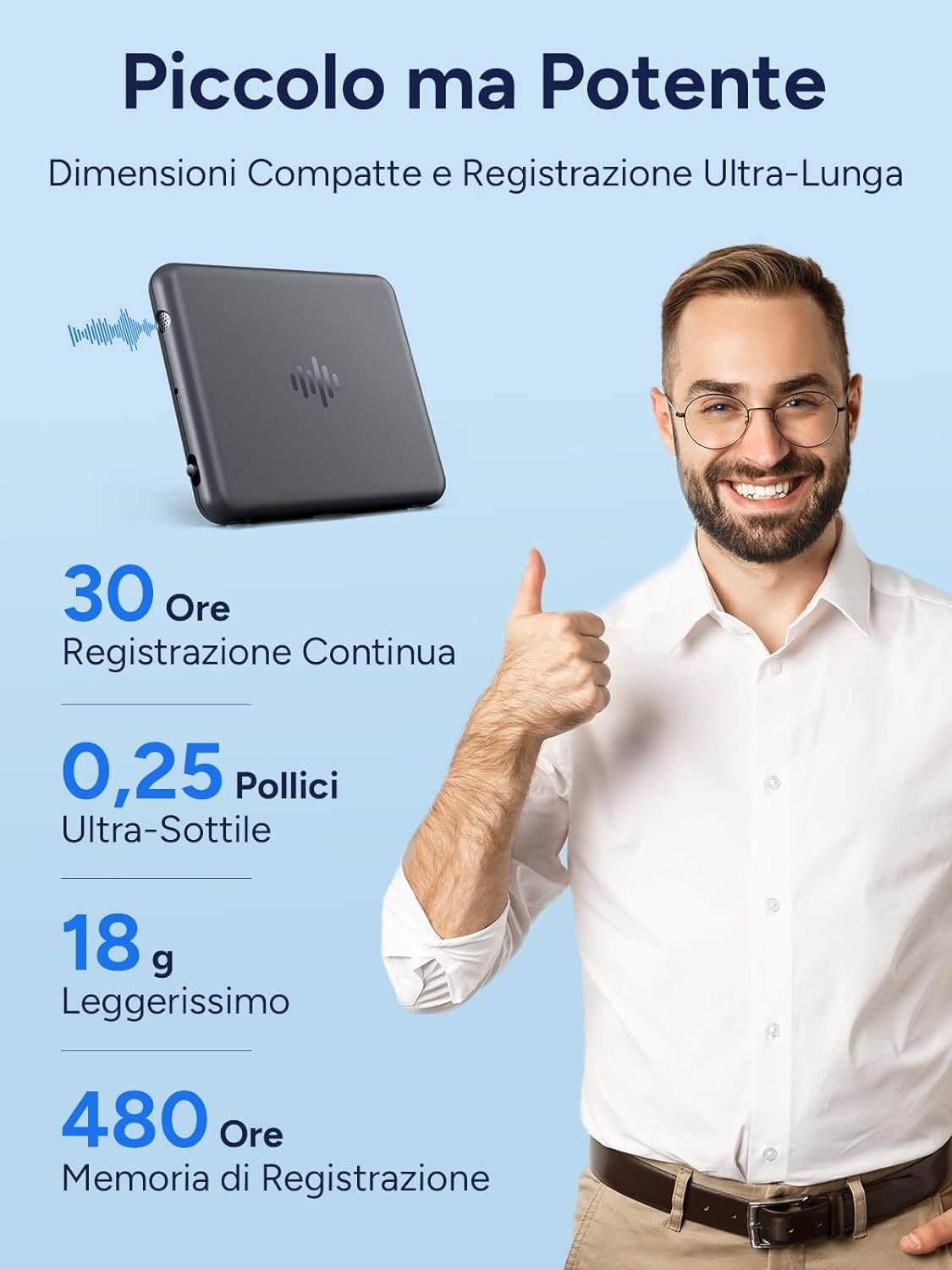 30 Hours Continuous Recording: The 450mAh battery supports up to 30 hours continuous recording and supports 40-hours continuous voice-activated recording.