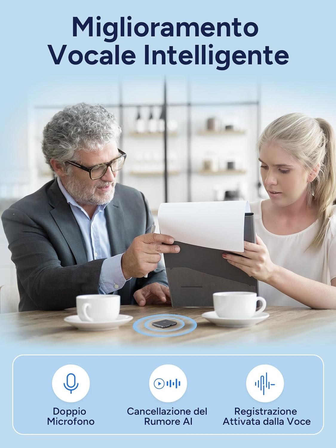 The Dynamic Duo: AI Noise Canceling and superior dual Knowles SiSonic mics are embedded into the iZYREC recorder, providing crystal clear audio with up to 1536 Kbps resolution.