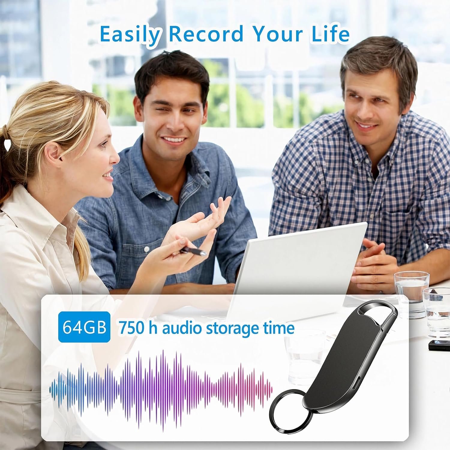 [AMPLE SPACE] Sized at 2.7×0.9×0.3 inches and boasting 64GB storage, it’s sufficient for 20+ hours of continuous recording and can store up to 750 hours of recordings. It’s also a reliable option for music playback and file storage