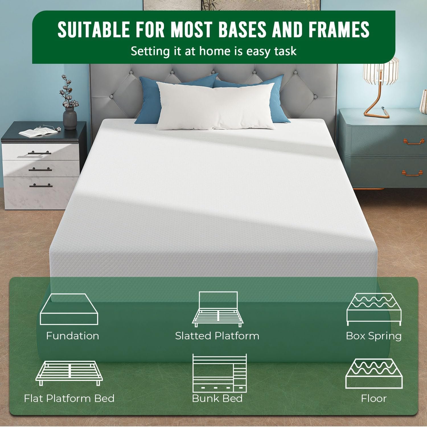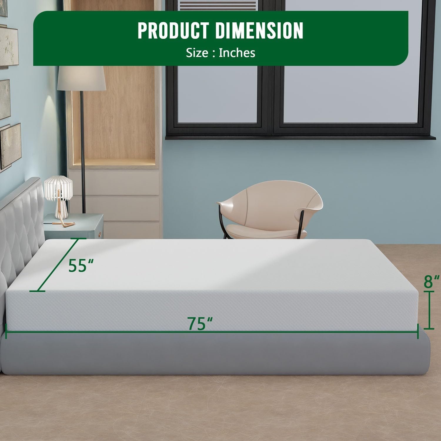 【Good Quality】Our mattress are 8 inches thick.Our mattress is including 2 inch gel memory foam and 6 inch thick density base support foam. Our mattresses are manufactured in strict accordance with standard sizes. So as long as your bed frame is standard size, it will match our mattress. The memory mattress can adapt to the curve shape of the human body, which can provide better support and comfort.