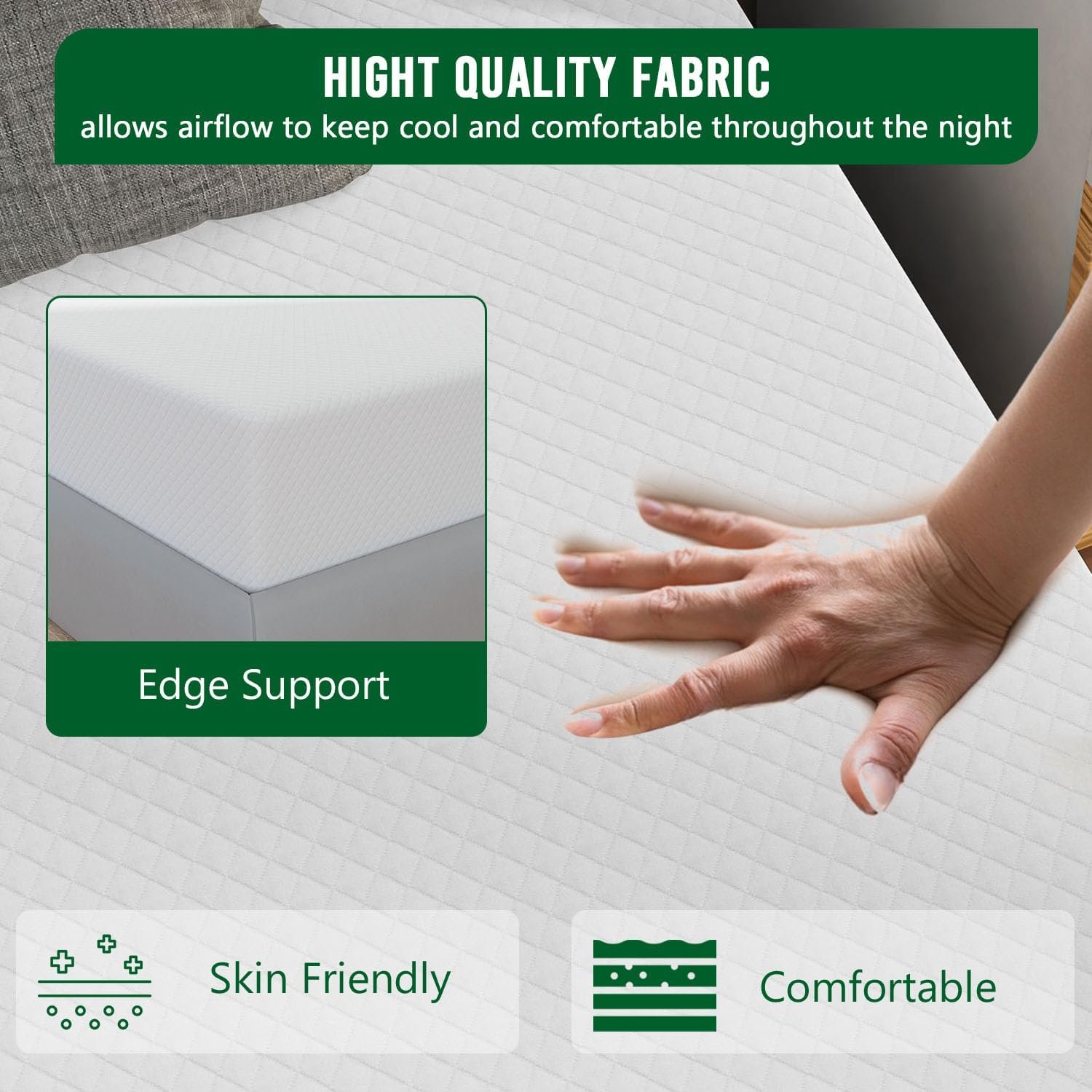 【Comfortable&Breathable】The gel memory mattress adapt to the environment to keep the mattress surface at the ideal sleeping temperature.The mattress cover is crafted from a high-quality, soft knitted fabric that offers exceptional durability. Whether it is winter or summer, this mattress can give you a good sleep experience.