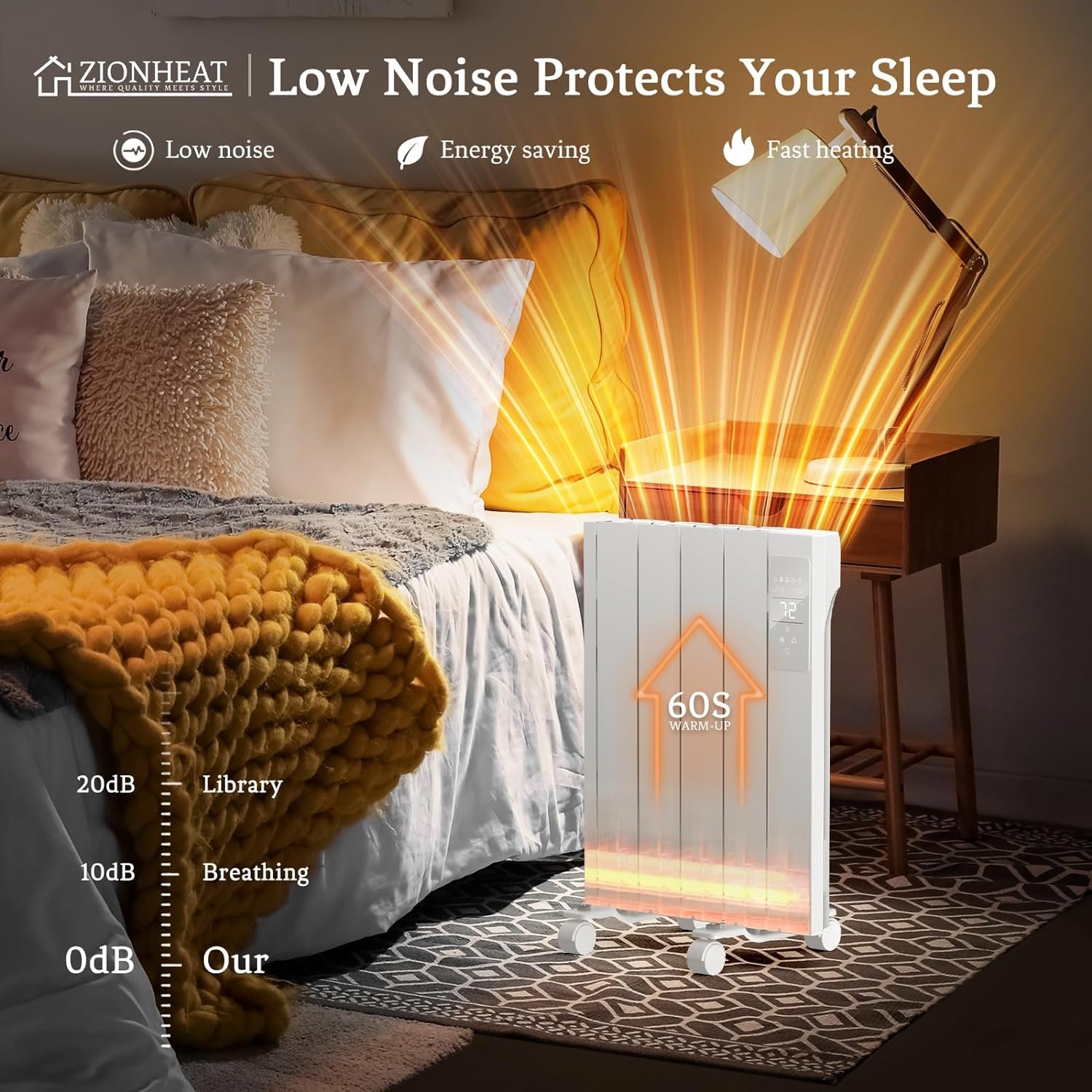 【Safety Guaranteed】Stay warm and safe approved Zionheat. It has tip-over and overheat protection, V0 flame-retardant materials, and a child lock function to prevent accidents and fires. Enjoy the cozy heat without any worries.